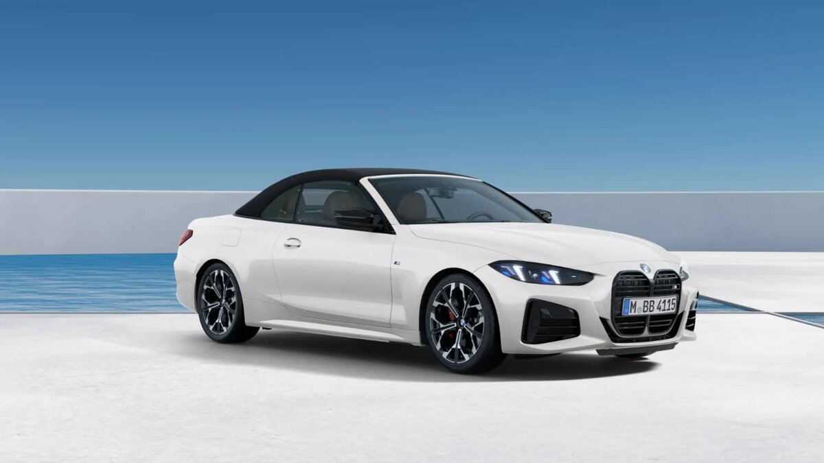 Ранее, в этом году, мы рассказывали о кабриолете LCI 4-й серии на выставке BMW Welt в образе M4, окрашенном в бархатный цвет Orchid. Но вот теперь в Мюнхене представлен и другой вариант обновлённого кабриолета — посетители могут полюбоваться M440i. Но не краска (белый минерал) делает его особенным, а блестящие колёса. Это новый 19-дюймовый индивидуальный комплект (стиль 1038) с Y-образными спицами и двухцветной отделкой, представленный вместе с Life Cycle Impulse 4er. BMW не стала радикально менять кабриолет M440i для его фейслифтинга в середине цикла, но установила новые адаптивные светодиодные фары. Эти более острые на вид фонари имеют стреловидные элементы, которые служат дневными ходовыми огнями, сигналами поворота и габаритными огнями. Мы можем сказать, что это модернизированные матричные фары по синим элементам, которые ранее использовались в лазерных фарах на модели до LCI. Другие изменения включают переработанную решётку радиатора (со значком M) и крышки боковых зеркал в специа
