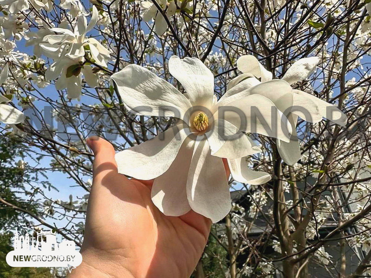 Апрель в этом году стартовал очень активно. В последние дни на улице стоит практически летняя погода. Природа на это отреагировала: буквально за пару дней деревья и кусты надели яркие наряды из свежих листочков и нежных цветов! Почувствовав тепло зацвела в Гродно и магнолия! Это редкое для наших широт южное растение более 10 лет назад высадили на одном из участков в поселке Фабричном. «Конечно, в первое время она требовала ухода. На зиму ее укатывали и укрывали, чтобы не замерзла, весной и осенью удобряли, и все же смогли приучить к нашему климату», — рассказывает гродненка Екатерина. Впервые зацвела магнолия на 5-6-й год. Однако, так много цветов, как теперь, у нее не было никогда. Смотрится все это действительно красиво. Огромные цветы напоминают белоснежных бабочек, присевших отдохнуть на куст. Хозяева явно смогут сделать много атмосферных селфи. Кстати, в Гродно пока магнолий очень мало. Но как показывает практика, при должном подходе и это южное растение может вполне прижиться у н