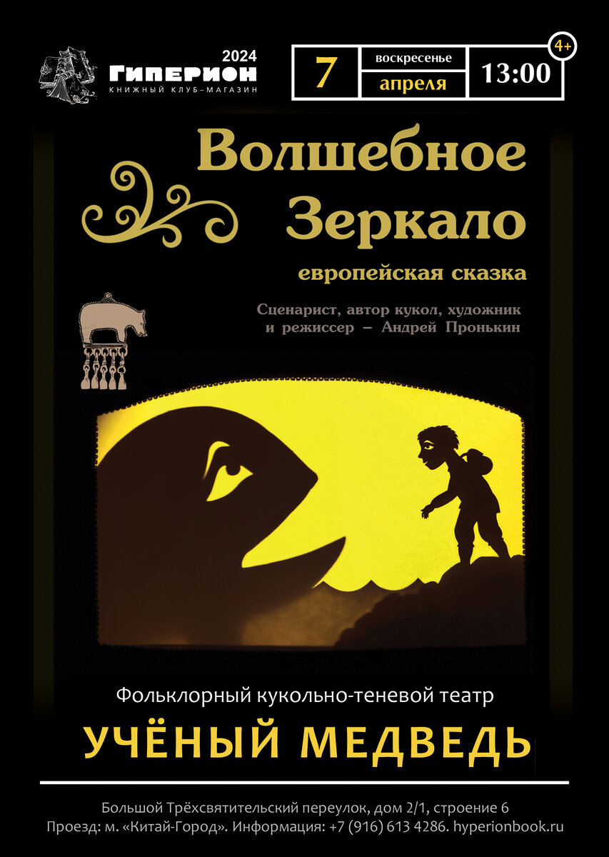 О детском теневом спектакле «Волшебное зеркало» театра «Ученый медведь» Современный театр интересен тем, что живо откликается на вызовы времени. А если речь идет о детском театре, что может быть актуальнее, чем детская интернет-зависимость? И вот театр «Ученый медведь» отважился попробовать противостоять этой цифровой эпидемии и создал сказку, где в образной форме рассказывается о том, насколько реальная жизнь круче виртуальной. Итак, спектакль «Волшебное зеркало» поставлен по мотивам европейского фольклора, но сюжет разыгран более, чем актуальный. Жила-была прекрасная принцесса, которая, естественно, мечтала выйти замуж. Но она была прежде всего принцессой, поэтому выйти замуж как все нормальные люди она не могла. Руки принцессиной положено добиваться, преодолевая непреодолимое, как учит нас европейский фольклор. И наша принцесса придумала игру в прятки, выиграть которую невозможно. Невозможно по той простой причине, что было у принцессы волшебное зеркало, которое умело показывать все