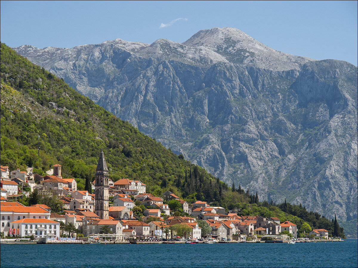 Переехать на рейсовом автобусе из Рисана, где мы провели утро, в Пераст было делом нескольких минут. И вот — чудесный городок на побережье Боки, город-сказка, город-открытка, город в стиле Венецианского барокко, город — живая декорация к романтическому или приключенческому фильму… И нынче всё было тут совсем как в первый наш приезд в Черногорию — светило солнышко, и (несмотря на середину весны) самые яркие краски лета плескались в морской воде, на ослепительных камнях стен и парапетов, в цветущих клумбах и пестрой толпе туристического люда. Тут есть на что посмотреть туристам, в этой истории, по-прежнему населённой людьми, вытянутой архитектурным ансамблем прямо вдоль кромки полной солнечных бликов лазурной воды…
