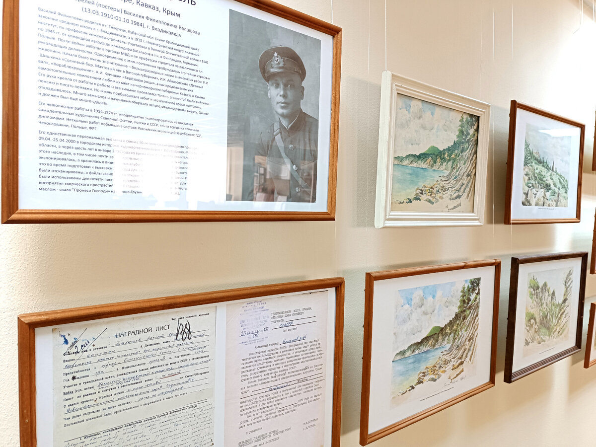 Кавказ, Крым, Черное море – все эти места можно увидеть на новой выставке работ, выполненных в технике акварели, которые создал художник-пейзажист, ветеран Великой Отечественной войны (1941-1945), инженер-строитель Василий Филиппович Балашов (1910-1984). Василий Балашов родился в Тихорецке Кубанской области (ныне Краснодарский край), закончил среднюю школу №5 во Владикавказе, а в 1935 году – Новочеркасский индустриальный институт по профессии инженер-строитель. С 1937 года служил на Черноморском флоте, участвовал в Великой Отечественной войне с 1941 по 1946 год, в том числе в Финляндии, Германии, Польше в составе подразделений 205-й стрелковой дивизии (II), (Полярной дивизии народного ополчения /Дикой дивизии /186-й дивизии), образованной в Мурманске в сентябре 1941 года и расформированной в 1946 году). После войны работал в органах МВД и по профессии строителя на различных, в том числе руководящих, должностях. Постепенно пробуждалось его стремление к живописи. Начало было очень значит