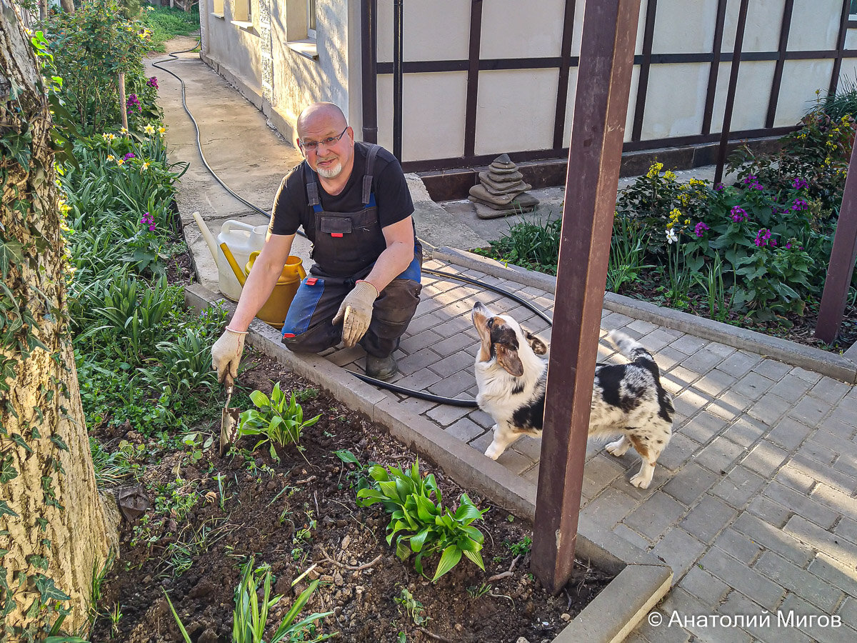 Земля тут твёрдая как камень. Поэтому перед посадкой мы её капитально пролили. Иначе без ломика не обойтись.
