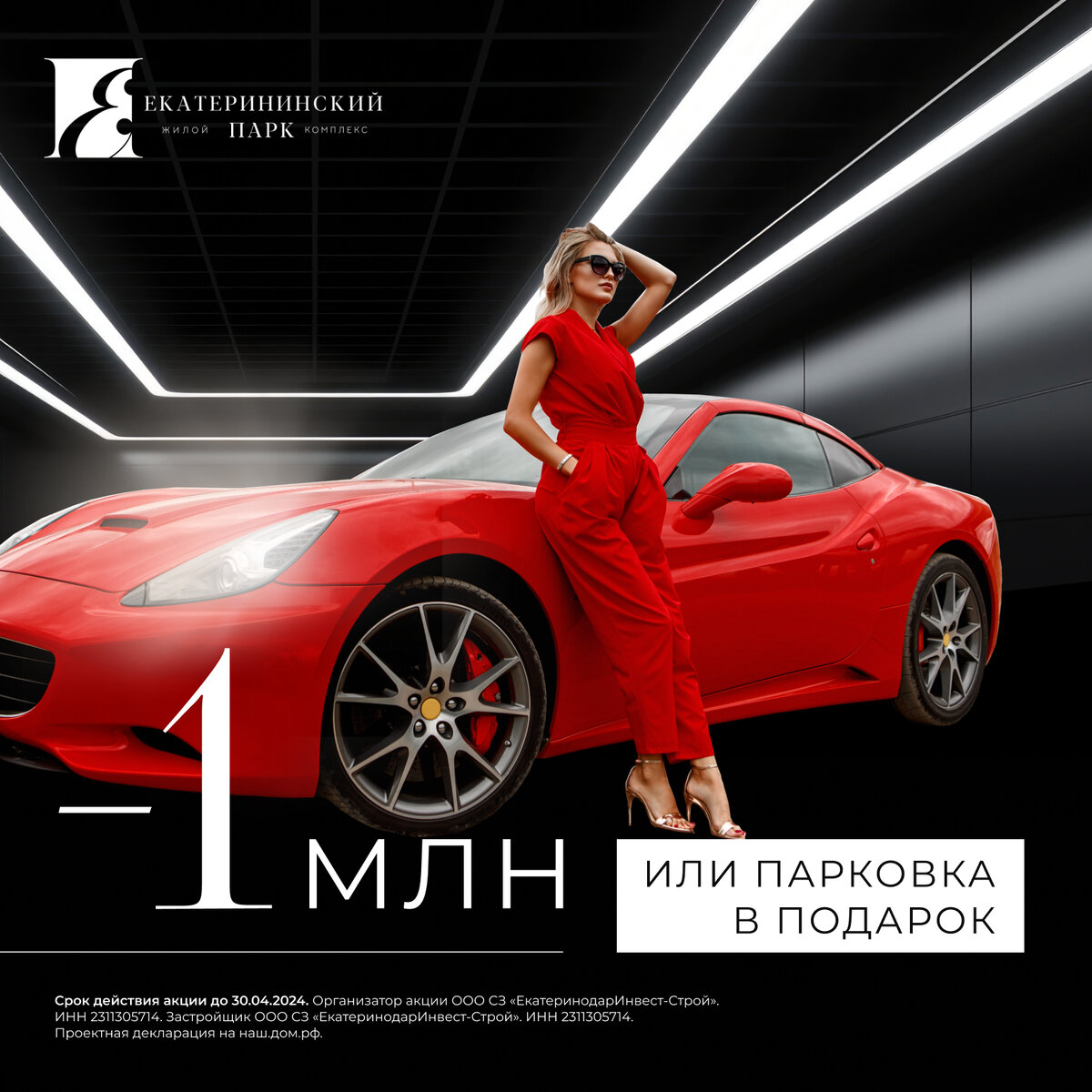 ДАРИМ машиноместо в подземном паркинге! Предложение действует при приобретении любой квартиры в литерах 1-3 ЖК «Екатерининский Парк» с 01 по 30 апреля 2024 года включительно.