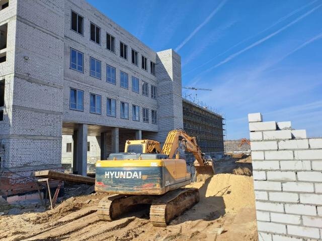В работе ежедневно задействовано 135 человек и 15 единиц техники. Сдать объект планируется в конце 2024 года. В общеобразовательном учреждении будут оборудованы 51 класс, актовый зал, комбинированная мастерская трудового обучения мальчиков и помещения технологии для девочек, столовая, два спортзала, зал лечебной физкультуры, два бассейна, хореографический зал, медблок, библиотека и др. Для перемещения по этажам здания помимо лестничных клеток предусмотрены четыре пассажирских лифта. На территории школы возведут большой спортгородок со ста