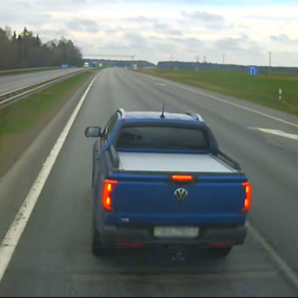 Трасса М1 (Брест — Минск — граница России) недалеко от поворота на Борисов, две полосы движения. По правой движутся автовозы, и один из грузовиков начинает их опережать по левой. Это, по всей видимости, не устроило водителя пикапа. Видео корреспонденту Onlíner прислал наш читатель. Автор записи ехал за рулем грузового автомобиля, автовозы опережал на скорости 98 км/ч. — Когда начал опережение, водитель пикапа был еще далеко. Но ему не понравился этот маневр, и он начал «учить», — рассказал собеседник. В сравнении с грузовиком даже большой пикап кажется мелким. Но, вероятно, смелости водителю не занимать, раз стал резко тормозить перед грузовиком.