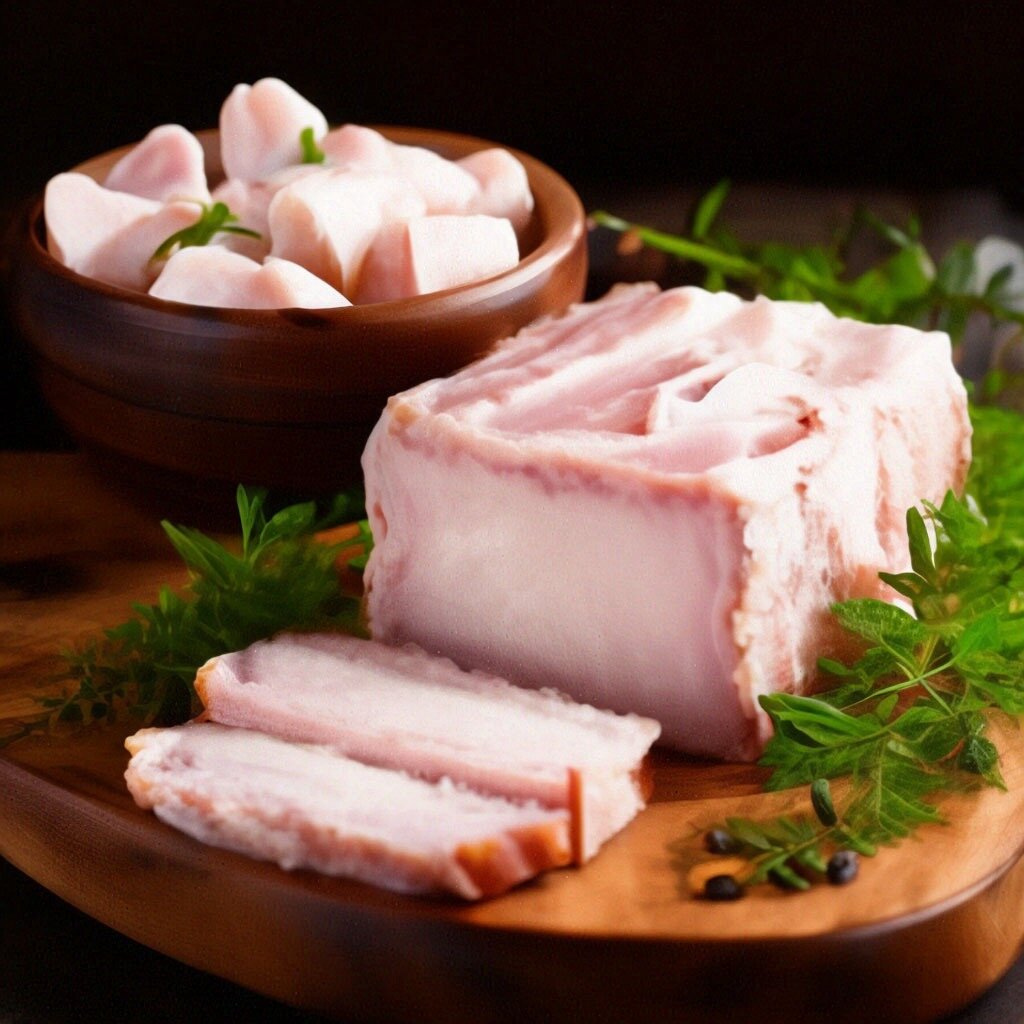 Ингредиенты: - 1 кг свиного сала - 5 луковиц - 3 столовые ложки соли - 2 чайные ложки черного перца - 4 лавровых листа Шаги: 1. Промойте сало и разрежьте его на кусочки размером 3-4 см. 2. Очистите луковицы и нарежьте их тонкими кольцами. 3. В большой кастрюле смешайте сало, лук, соль, перец и лавровые листья. 4. Залейте водой так, чтобы она покрыла сало. 5. Доведите до кипения на среднем огне и варите в течение 30 минут. 6. Снимите кастрюлю с огня и оставьте остывать при комнатной температуре на 6-8 часов. 7. Поместите сало в холодильник на 24 часа. 8. Нарежьте сало на более мелкие кусочки и подавайте к столу. Приятного аппетита!