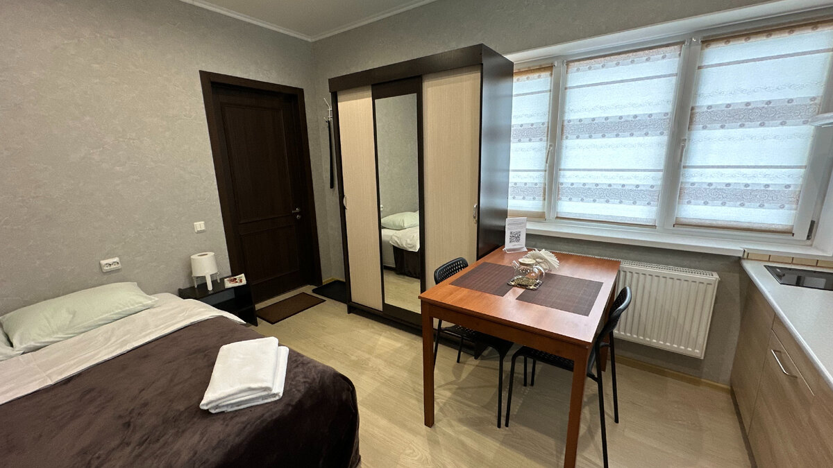 МонрепоАпарт - это частный дом, разделённый на полноценные квартиры-студии. Наши номера делятся на номер-эконом, 3 номера стандарт, апартаменты с двухспальной кроватью, апартаменты с 2 односпальными кроватями, мансардный этаж с игровой зоной для детей и двухкомнатные апартаменты на мансарде с детской игровой зоной. Расскажем о каждом номере поподробнее: Апартаменты категории "эконом" на 2-м этаже. Небольшой, но очень уютный номер на двоих. В номере есть все необходимое для Вашего комфортного проживания: диван-кровать, шкаф-купе, кухня с варочной панелью и посудой для самостоятельного приготовления еды. Холодильник, плазменная панель, 2 комплекта полотенец, постельное белье, фен, чайник. Отдельная ванная комната с душевой. Бесплатный wi-fi. Этот номер идеально подойдёт для 1 или 2 человек. Добро пожаловать в МонрепоАпарт :)