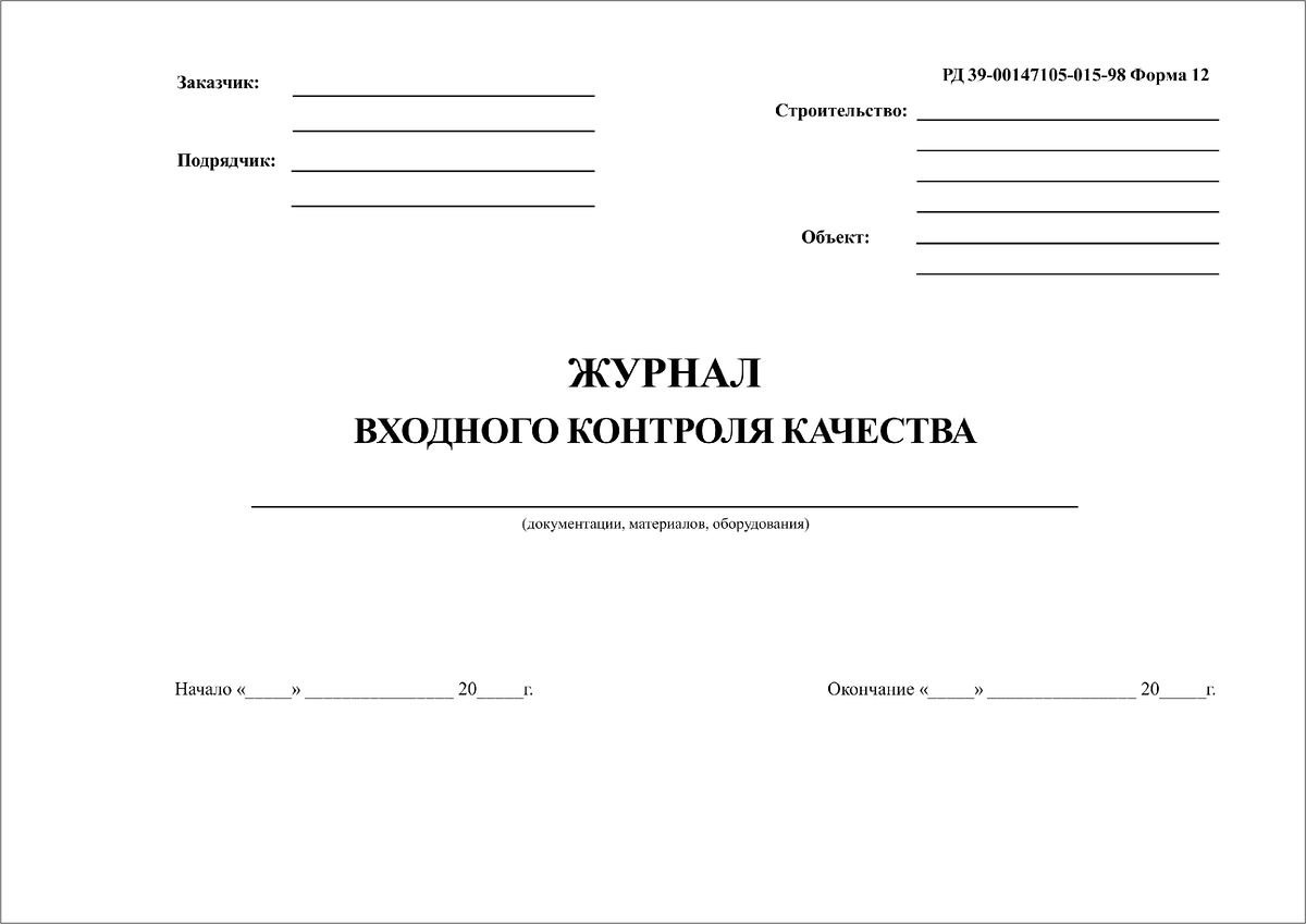 Журнал входного контроля качества РД 39-00147105-98 Форма 12