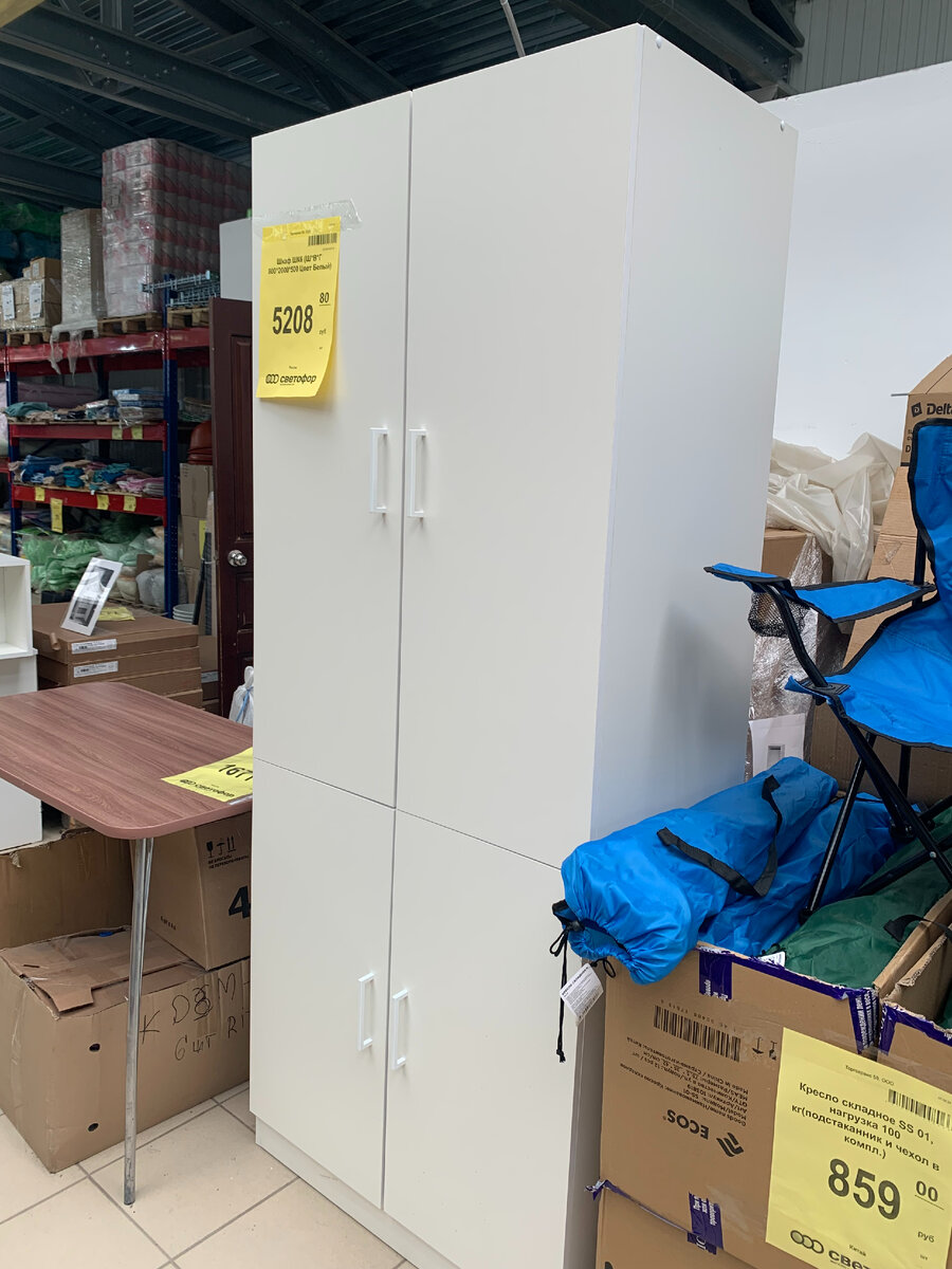 Начну с мебели, потому что мне это всегда интересно. В продаже появились шкафы с распашными створками, изготовленные из лдсп в белом цвете. Цена на эту модель составляет всего 5208 рублей. Кроме того, там же можно найти и тумбу подвесную или напольную из модульной системы "Токио". Эта тумба выполнена из того же материала - лдсп, и также имеет белый цвет. Размеры составляют 90*33*26 см, и она стоит всего 888 рублей. Удивительно, правда?