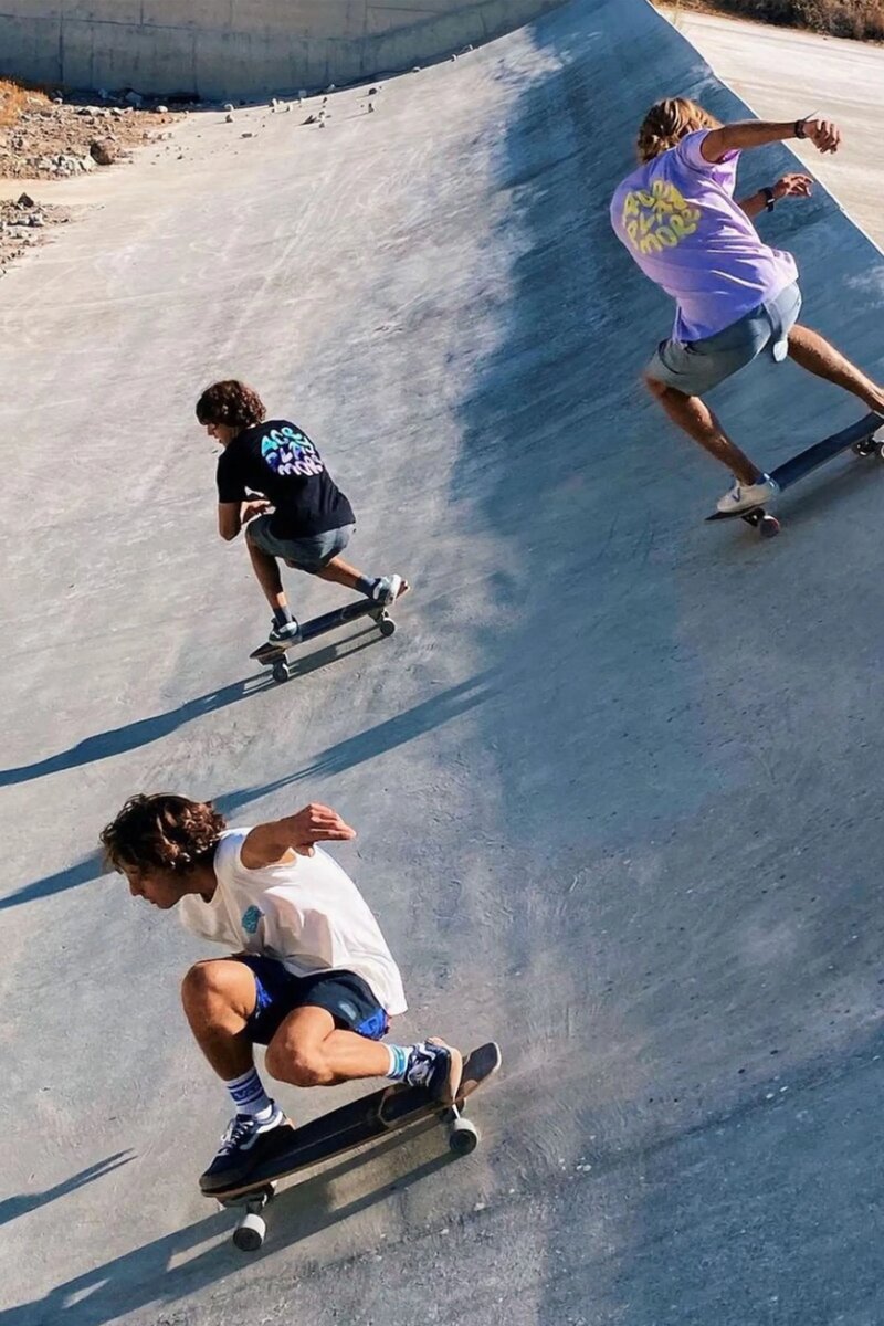 Разновидность скейта - отличается более мягкой передней подвеской. Основное управление на передней ноге, что приближает к управлению серф доской при выезде на гребень волны и балансированию на ней. В чем отличие от обычного скейта/What distinguishes it from a regular skateboard?: Разгоняться на этой можно только за счет пампинга не отталкиваясь второй ногой от земли - за счет поворота на передней подвеске. При этом работает все тело! Важно - правильно выстраивать все узлы. Это основное движение при серфинге на волнах, позволяющее дольше ехать вдоль волны. Вертикальный баланс Мягкость передней подвески требует навыка выстраивание вертикального баланса тела - так как точка опоры минимальна - центральная продольная линия также как и на серф доске. Маятник - движение при выходе на волну - серфер выезжает на ее пик и разворачивается чтобы снова разогнаться и выехать не ее гребень. Это движение Surf Skate позволяет отработать максимально приближено к натуральным условиям. Сначала его не