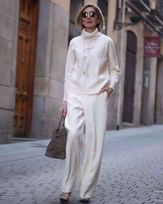 Белый – универсальный цвет, который подходит всем, он есть в гардеробе любого человека. Хотя бы в виде офисных рубашек. Женщинам холодного цветотипа больше подойдет чистый цвет, белоснежный, а обладательницам теплой внешности подойдут оттенки: карамельный, зефирный, молочный. Особенно эффектно этот цвет смотрится на загорелой коже. Ниже примеры белых образов для вашего вдохновения, которые вы сможете повторить. Образы в белом цвете с брюками Не стоит бояться белых брюк, особенно летом, когда погода позволяет их носить. Брюки прекрасно будут сочетаться как с белым верхом, так и с цветным. В дополнение к брюкам можно легко подобрать блузку, кардиган или классическую рубашку. Образы в белом цвете с джинсами Без джинсов не обходится никто в современно мире, поэтому белые джинсы будут отличным дополнением и для повседневных, и для вечерних нарядов. В монохромном наряде с джинсами будут отлично смотреться жакеты, футболки и рубашки. В таких нарядах вы точно не останетесь незамеченной. Обра