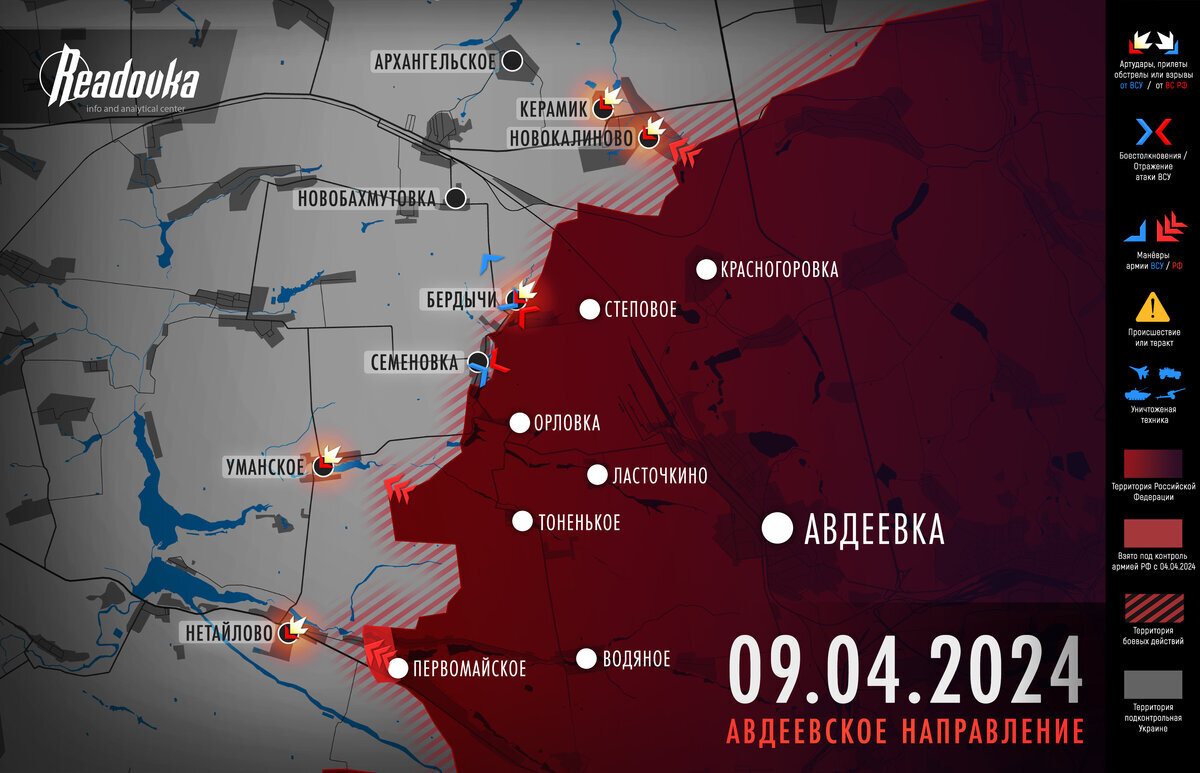 Редакция Readovka собрала самые важные события за 9 апреля в разрезе СВО. Главными эпизодами дня стали начало наступления на село Новокалиново, рассчитанное на срыв возможного плана ВСУ по остановке фронта, новые воинственные речи в ЕС и угрозы террористов повторить в Испании на футбольных матчах теракт по образу трагедии в «Крокусе»..