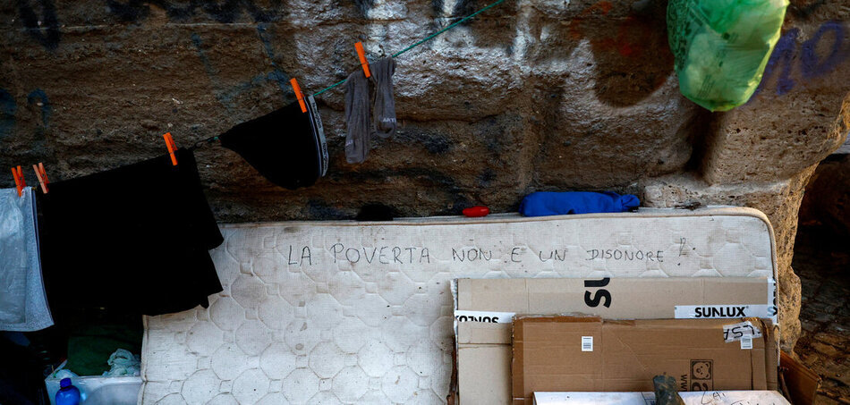«Бедность – это не позор», но и результат мер, принятых правительством Мелони Согласно данным Istat, заработная плата в Италии на 12 % ниже средней по Евросоюзу. Это на €3700 в год меньше, чем средняя заработная плата в ЕС, и более чем на €8000 ниже, чем у среднего немецкого работника. Инфляция «съедает доходы», заявил председатель профсоюза пенсионеров CGIL Альфред Эбнер. В прошлом году итальянским семьям пришлось потратить на основные продукты питания, такие как хлеб, макароны, мясо и колбасные изделия, на €613 больше, чем в предыдущем году. Среди портовых рабочих, которые недавно объявили забастовку, средняя заработная плата составляет около €21 000 в год. Согласно отчету католической благотворительной организации "Каритас", в прошлом году число новых бедняков, обратившихся к организации впервые из-за финансовых трудностей, возросло с 31 до 45 %. Доклад о бедности подчеркивает, что случаи обнищания особенно выросли среди семей с детьми, женщин и молодежи. Проведенные исследования по