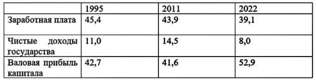 И так по всем регионам. И по всем отраслям. Ведь прибыль капитала у нас выше, чем вся заработная плата всех наёмных рабочих в стране. Пропорции в структуре ВВП примерно такие — 40% заработная плата, 10% налоги в государственный бюджет, а 50% валовая прибыль капитала.