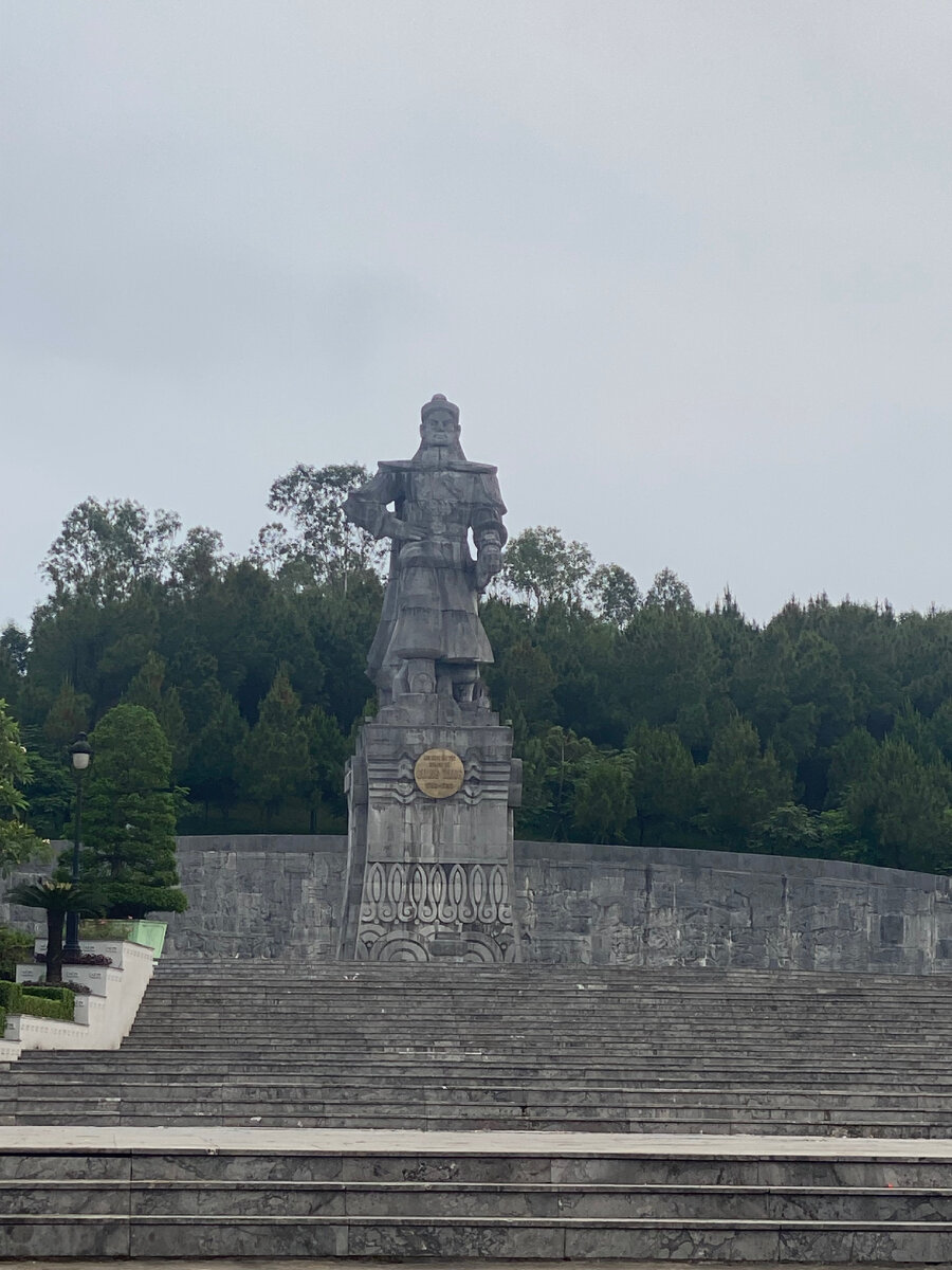 Прошел мимо памятника древнему вождю вырезанному из серого камня. В 2019 мы с Денисом, пошли искать какое-то забытое место в окрестностях города, как раз проходя мимо этого памятника нас застал жуткий тропический ливень. Давайте посмотрим кому установили монумент жители города Хюэ.