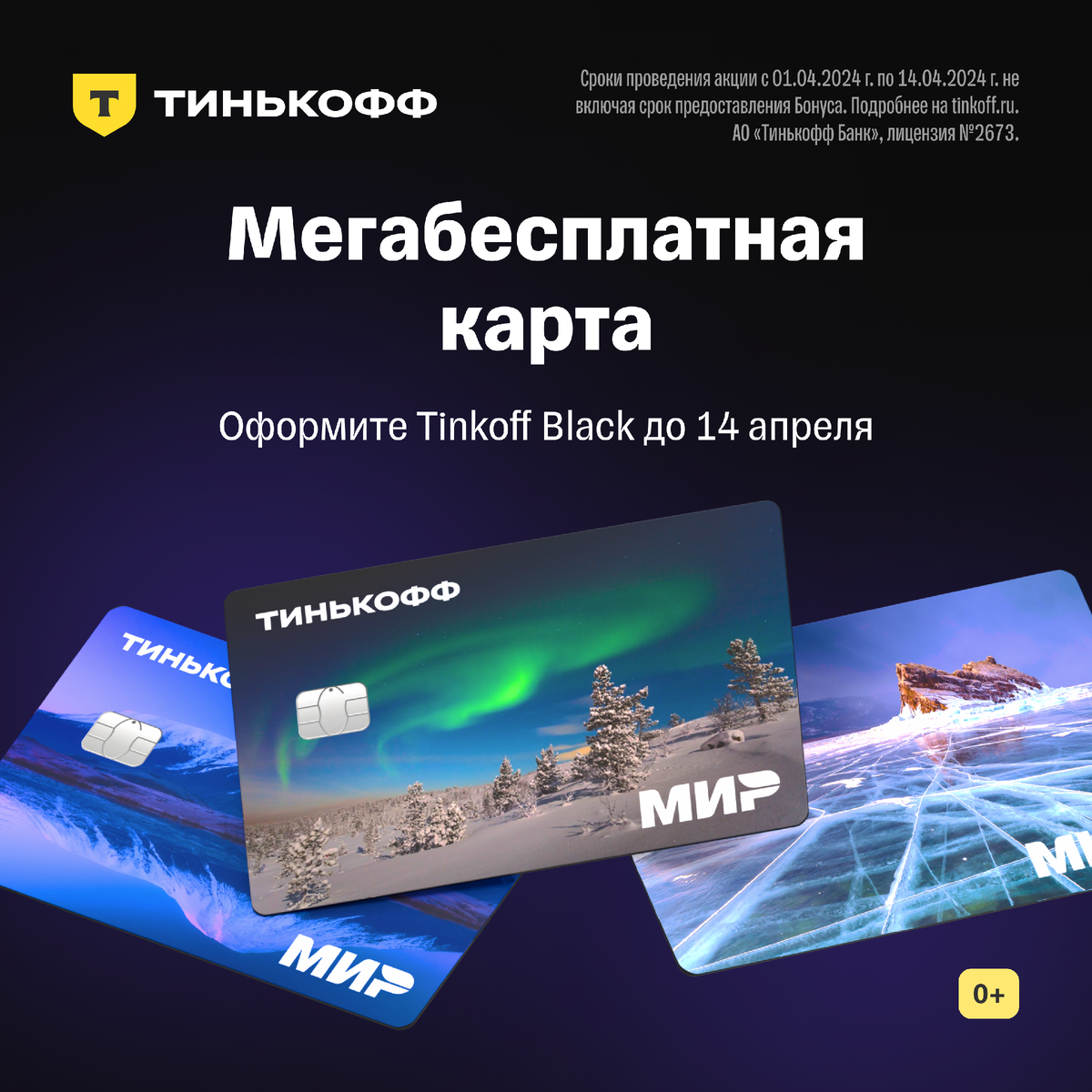 Успейте оформить Tinkoff Black до 14 апреля, чтобы получить пожизненное бесплатное обслуживание. ⏳ Лимитир