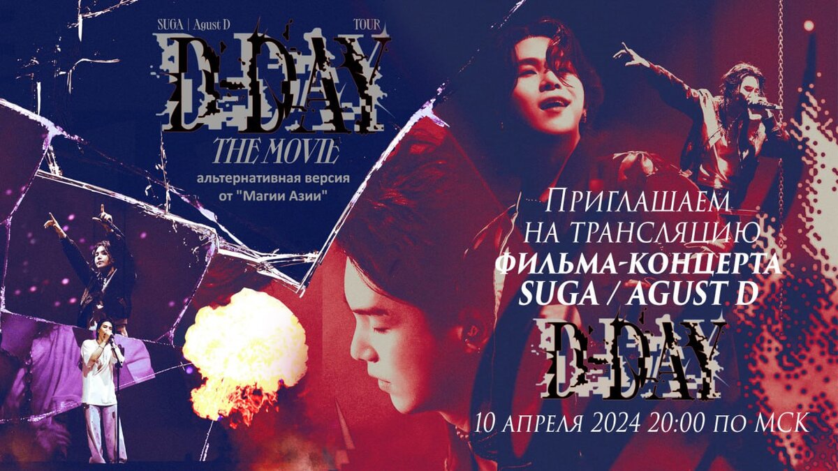 Всем привет, с вами "Магия Азии" и я, Ще✌️ У меня есть для вас две новости хорошая и плохая. Начну, пожалуй, с плохой. Сегодня, 10 апреля, в кинотеатрах по всему миру начали показывать концертный фильм нашего гения-Сахарочка Юнги SUGA│Agust D TOUR 'D-DAY' THE MOVIE.