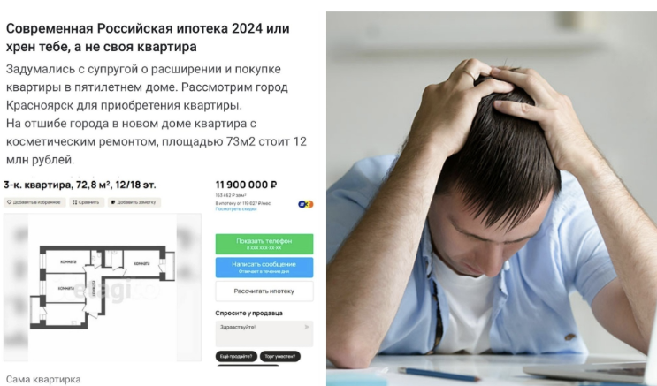 Когда житель Красноярска решил, что пора ему попробовать себя в роли обладателя трешки в новом пятилетнем доме, он, конечно, не предполагал, что эта затея выльется в такие денежные перипетии. Ведь в спальном районе сибирского города за скромные 73 квадратных метра с косметическим ремонтом просят почти 12 миллионов рублей! Не шутка, да и недешево для Красноярска. Пять лет назад, в 2019 году, та же самая квартира стоила всего 7,2 миллиона. Но время неумолимо летит, пандемия, и, в 2021 году цена уже догнала 9 миллионов. И вот бац - февраль 2022-го, и те же 73 метра теперь оцениваются уже в 12 миллионов! И вот тут-то и начинаются настоящие финансовые подвиги. Ведь чтобы заполучить такую квартирку в ипотеку, требуется первоначальный взнос в размере 30%, что в данном случае составляет 3,6 миллиона рублей. Ну где же взять эти деньги, чтобы только начать свое ипотечное рабство? Не зря говорят, что главное - это не деньги, а их количество! Представьте себе эту ситуацию: вы собрались купить ква