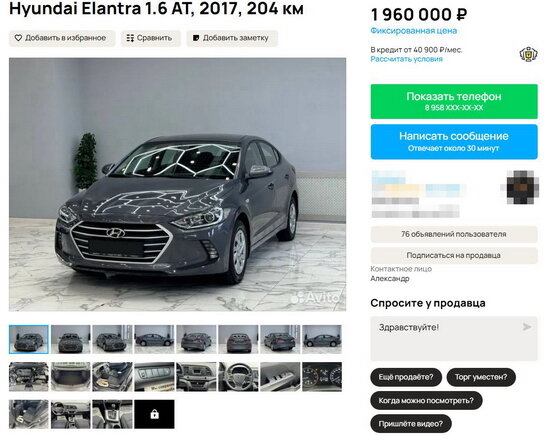 В сети натолкнулся на необычный Hyundai Elantra 1.6 AT 2017 года с пробегом всего 204 км. Не тысячи километров, а именно км. Такие авто вызывают мое удивление, ведь как удается сохранить их в таком состоянии — это загадка. Задаю себе вопрос, купил бы я такое авто? Безусловно, но только по доступной цене. Если я приобрету этот автомобиль и начну его использовать, он с каждым новым км будет терять свою стоимость и, в конечном итоге, свою уникальность. Такие автомобили радуют глаз. Редко увидишь «новый» семилетний автомобиль, многие ценители «охотятся» за такими автомобилями, но достаются они «избранным». Оригинал статьи читайте на www.allavto.spb.ru или www.help-812.ru