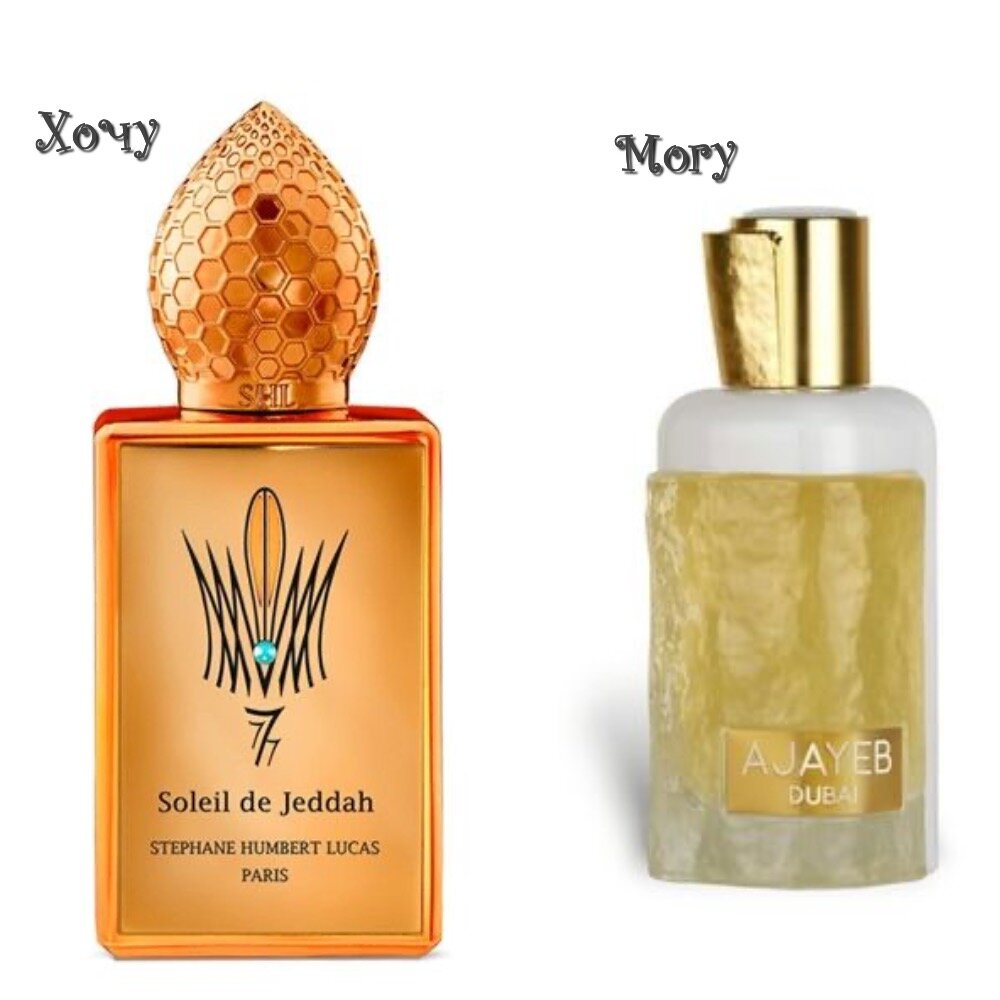 И на God of Fire не похож, а вот Soleil de Jeddah - Mango Kiss Stéphane Humbert Lucas 777 сходство имеет и весьма четко вырисовывается картина «откуда ноги растут». Это заявление не голословное, я нашла свой отливант с Mango Kiss, который мне прислала Мария Нелл, моя sugar mummy, и сравнила их параллельно. Конечно, Mango Kiss сочнее, богаче, ярче и интереснее, ноты глубже проработаны, арабчик собран по-беднее, проще и суше, но направление у них одно и близкое. И честно, смело могу сказать, что Ajayeb Dubai Portrait Lattafa Perfumes это отличный, бюджетный аромат на тему манго и я смело могу его рекомендовать к знакомству, желательно, через пробник, ибо 100 мл размер не шуточный.