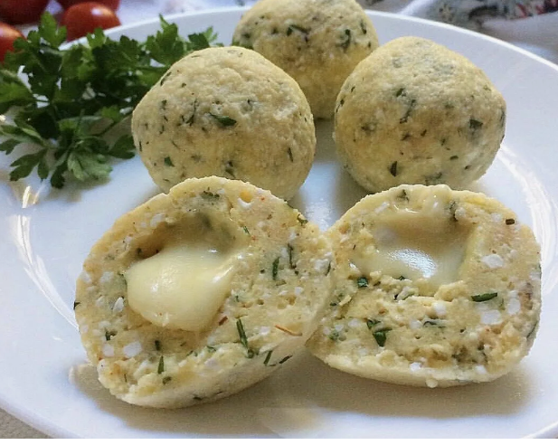 Сыр нарезать кубиками толщиной около 1 см. Сформировать шарики, поместив внутрь кусочек сыра.