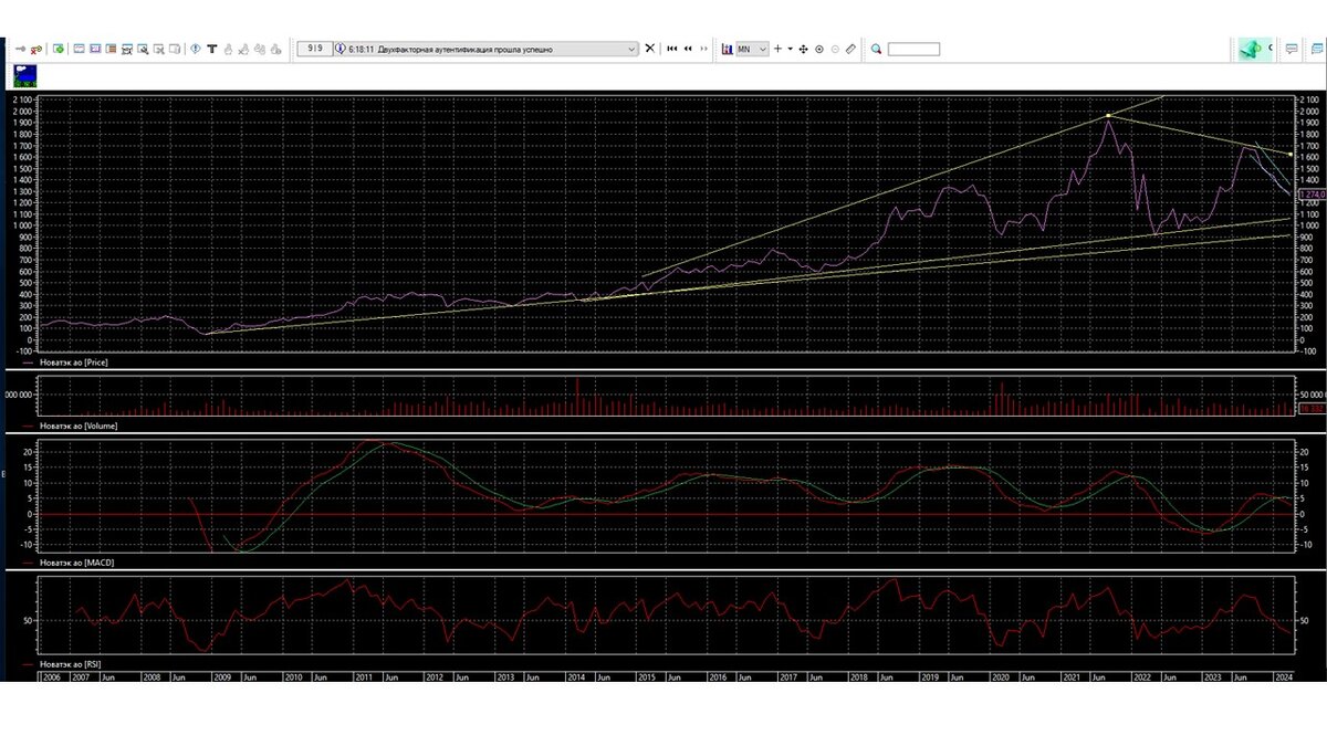 События в новостном фоне постепенно ухудшаются, положение акции Новатэк на фондовом рынке сейчас находится в затруднительном положении. Дивидендную политику этой весной компания Новатэк выполнила, осталось выполнить ее и осенью, но до нее еще далеко. Поэтому акция продолжит свою просадку некоторое время. Также США пытается уничтожить конкурента