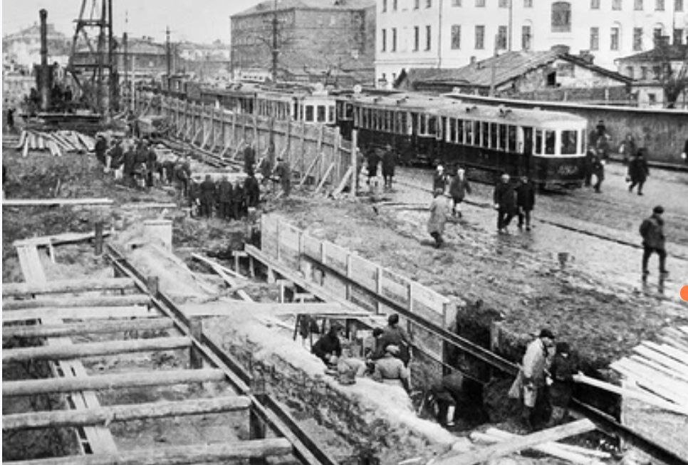 Начало строительства На заседании Пленума ЦК ВКП(б) 15 июня 1931 года было принято решение о строительстве первого в СССР метрополитена. Мало кто предполагал масштаб трудностей, ожидавших строителей московского метро. Нигде в мире метростроители еще не сталкивалась со столь неблагоприятными условиями. Будущие тоннели метро должны были пересечь русла Неглинки, Ольховки, Рыбинки и множества других мелких речек. И как только метростроевцы потревожили их покой, пришли в движение плывуны, представлявшие собой смесь воды, глины и песка. Они вторгались в подземные выработки, сводя на нет усилия метростроителей, подмывая фундаменты домов, что грозило обрушением зданий. Участок первой очереди от «Сокольников» до «Комсомольской» и от «Библиотеки имени Ленина» до «Парка культуры» строили «открытым способом», когда раскапывается котлован на всю ширину тоннеля, сооружается обделка (строительная конструкция, которая возводится вокруг горной выработки при строительстве подземного сооружения) и л