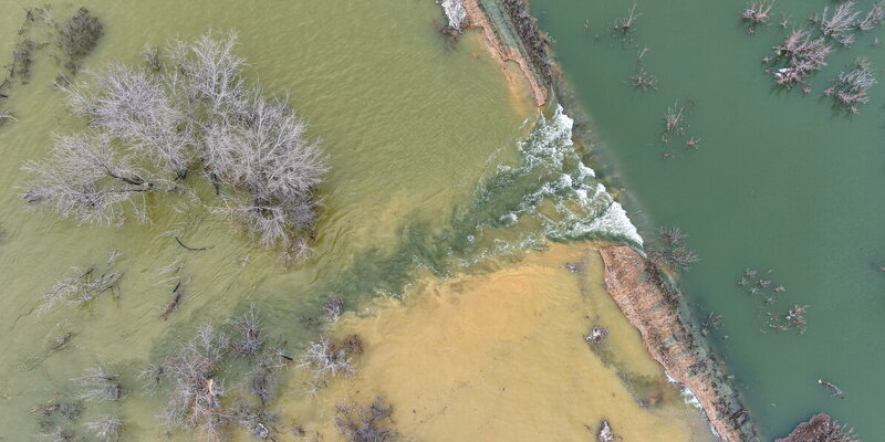 С большой долей вероятности можно утверждать что участок дамбы был заброшен и не выдержал паводка.