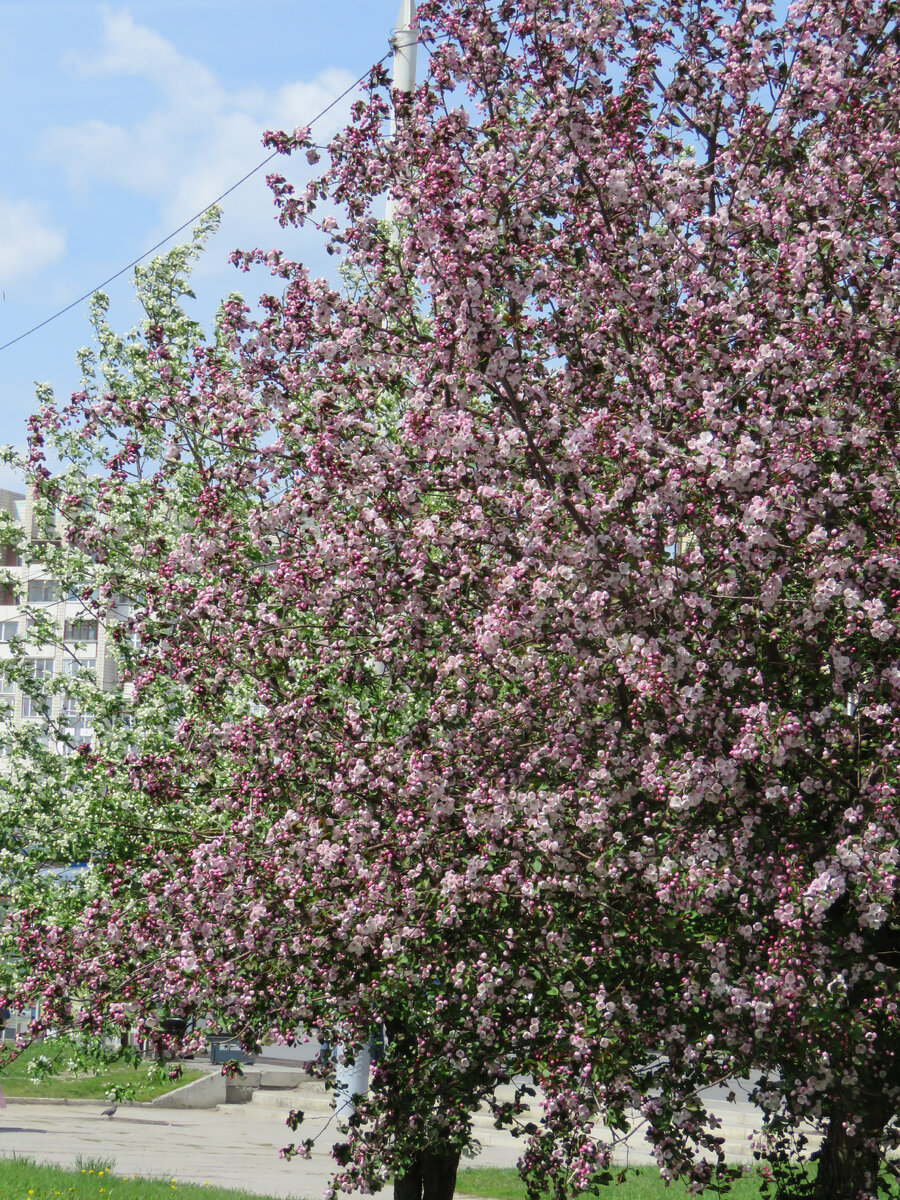 История быстротечна. И сейчас омичи даже представить себе не могут, что обычная ягодная яблоня (сибирка), вездесуще цветущая белым в мае, это привозное и насильно насаженное. Через какое-то количество лет кто-то с трудом сможет представить, что и видовая яблоня Недзвецкого медленно и постепенно входила в культуру озеленения и города, и частных садов. Я всегда только за такую красоту не только в садах, но и в городе. Я, можно сказать, фанат декоративных хорошо сформированных яблонь разных сортов. Но, увы, сорта - ребята непредсказуемые в плане зимовки. Кто ж их проверял-то у нас..А вот эта видовая девица она хороша. Не без недостатков, конечно. Но те недостатки лихо перекрываются ее живучестью, стабильностью и шикарным цветением. Самый неожиданный недостаток это то, что обычно (почти всегда) этот вид размножается семенами. Поэтому вариабельность присутствует. Может затрагивать конечную высоту, габитус, окраску листвы. И главное - плоды. Да, плоды всегда мелкие, но бывают совсем мелкие,