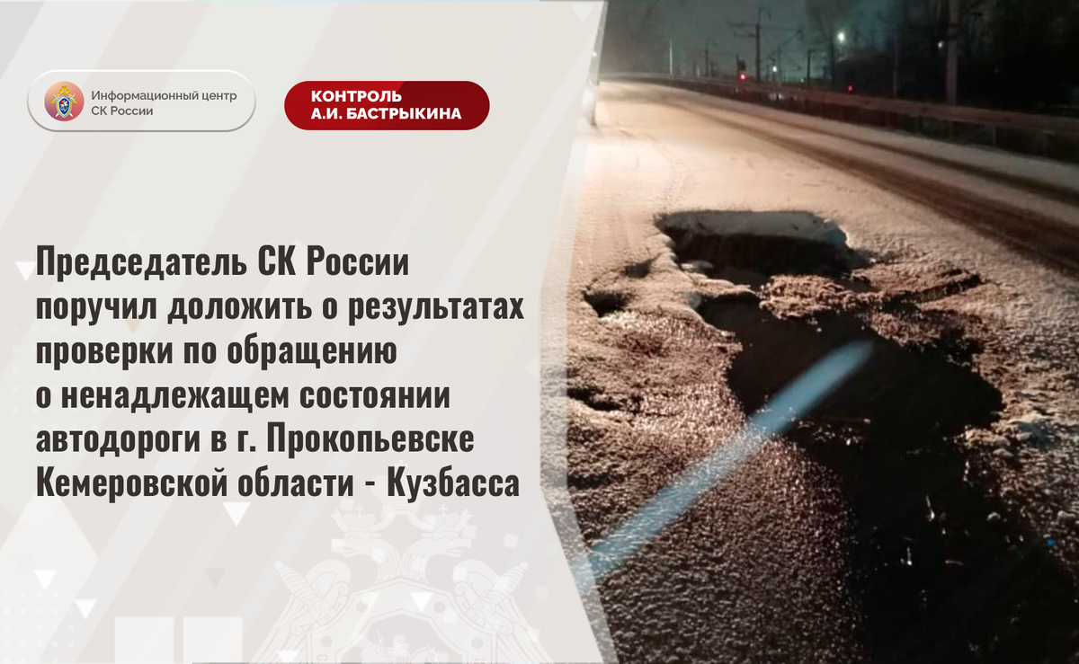 Председатель СК России поручил доложить о результатах проверки по обращению о ненадлежащем состоянии автодороги в г. Прокопьевске Кемеровской области - Кузбасса