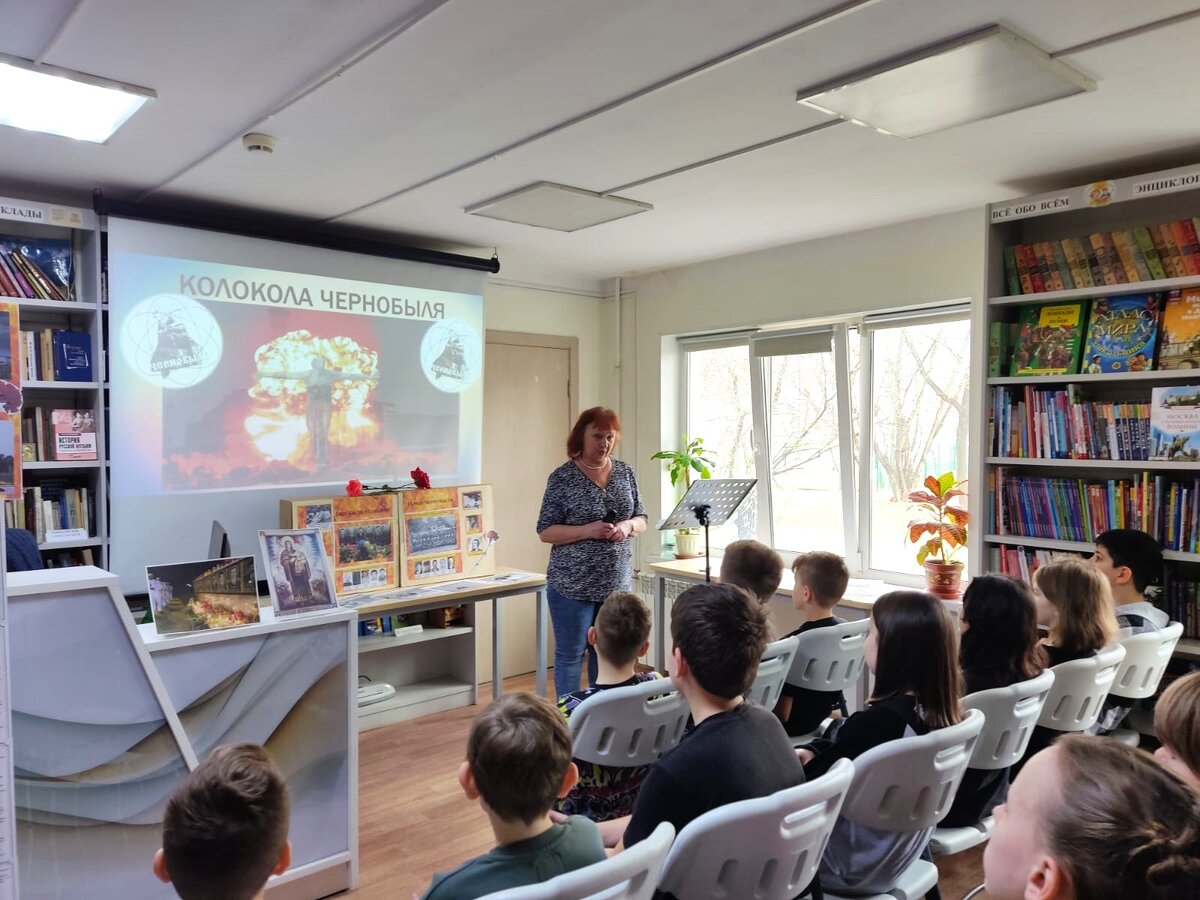 В 2024 году исполняется 38 лет со дня крупнейшей аварии на Чернобыльской атомной электростанции за всю историю человечества. Чернобыльская авария затронула судьбы миллионов людей. По просьбе преподавателей и учащихся 4-х классов школы №2117 Анжелика Комарова, заведующая отделом обслуживания Библиотеки семейного чтения, подготовила и провела час памяти «Колокола Чернобыля». Ведущая рассказала об одной из самых страшных экологических катастроф. Ребята узнали о том, что предшествовало аварии на ЧАЭС. Ничего не предвещало беды, люди спокойно жили. Но в ночь на 26 апреля ровно в 1 час 23 минуты прогремели один за другим два взрыва и сорвали крышу со здания четвёртого блока атомной станции. Через образовавшееся отверстие выбросило бетон, графит, другие осколки, обнажилась активная зона реактора. Реактор ЧАЭС выбросил в атмосферу 50 тонн испарившегося топлива. Анжелика Комарова рассказала детям о последствиях аварии: о заражении воздуха, почвы, воды, растительности и животных, о людях, пол