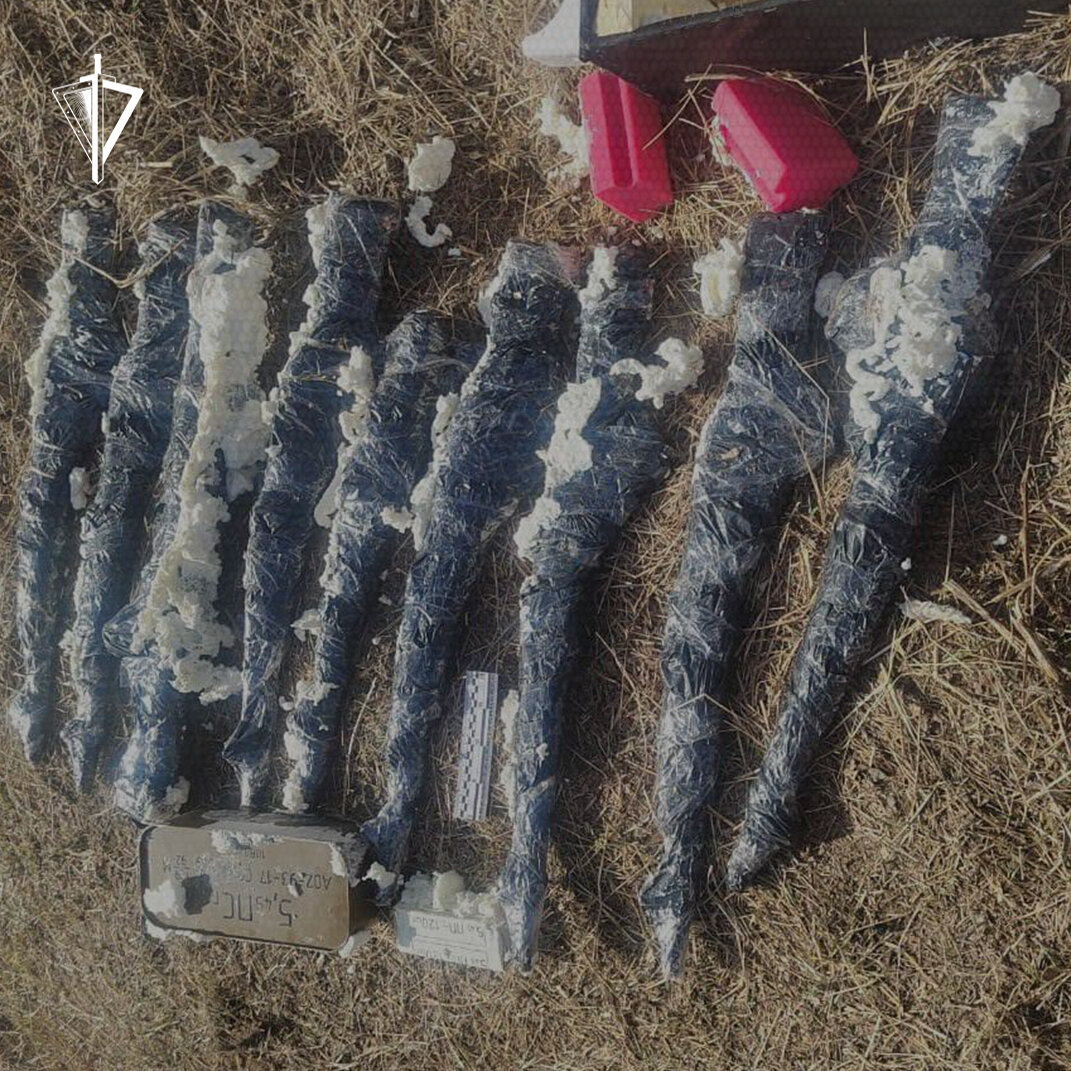 В найденных на пересечении просёлочных дорог ящиках находились тщательно упакованные 10 автоматов Калашникова и 1200 патронов к ним.
