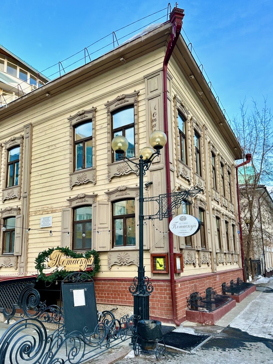 На носу выходные, а значит, самое время продолжить рассказ о Тюмени гастрономической. На 8 марта в «Чум» мы не попали – за две недели все столики были забронированы, так что нам пришлось искать альтернативу. Ей стал ресторан «Потаскуй», расположенный в историческом здании Тюмени. В конце 19 века это был жилой флигель в составе усадьбы Александра Ивановича Михалева, которого назвали «рыбным королем» Тюмени. Челябинский мещанин, он перешел в купеческое сословие, и весьма преуспел, поставляя сибирскую рыбу по всей России. Помимо этого, 30 лет он состоял гласным городской Думы Тюмени, был членом учетного комитета Общественного банка, торговым депутатом, церковным старостой – то есть вёл еще и очень активную общественную жизнь. После революции во флигеле проживали отец Куйбышева, семья художника Митинского, располагались райисполком и гидрометеобюро. Потом дом был заброшен, несколько раз горел и мог сгинуть в небытие, но Александр Юффа, предприниматель в Тюмени, взялся его восстановить и п