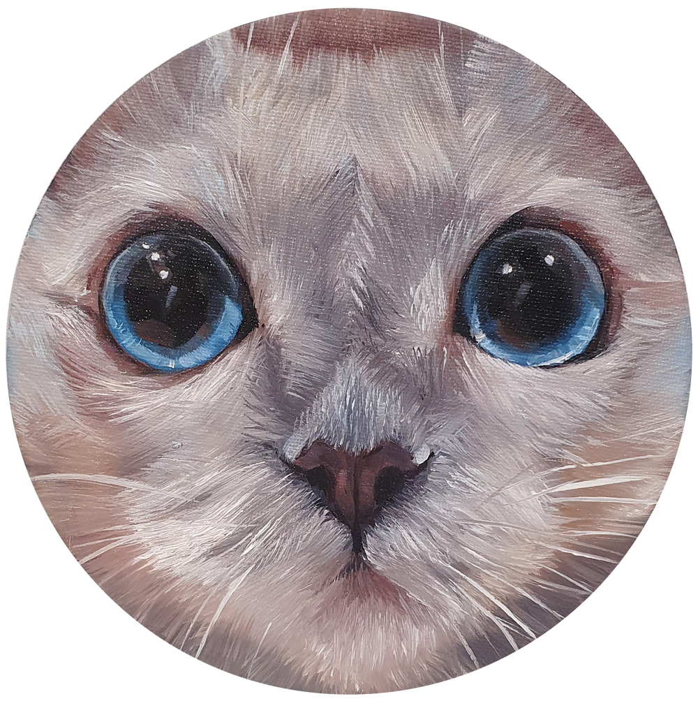 Круглый холст. Мне часто пишут, что не знали, как использовать круглые холсты. А я наоборот, сразу схватила в магазине такие и много разных сюжетов рисовала на них. Но особенно пользуются спросом и собирают лайки мордочки котов в круге ) Коты очень любопытны и всюду засунут свою мордочку.
