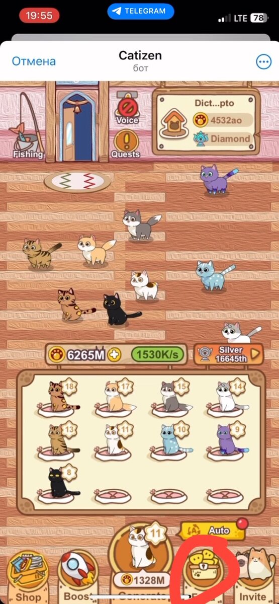 ГАЙД. Как прокачивать и покупать котов в Catizen. 1) Для того чтобы купить кота необходимого вам уровня, вам необходимо перейти в раздел Feed и приобрести того кота, которого вы хотите купить. Учтите, что вы не сможете купить кота сразу 100-го уровня, если вы ранее не прокачали его с помощью скрещивания. А также учтите, что коты самых высоких (из доступных) уровней покупаются за серебрянные $Fish Dollar. 2) Для того, чтобы открывать новые уровни Котов, вам необходимо их скрещивать (соединять одинаковые уровни Котов между собой для того, чтобы получить новый уровень). 3) В разделе Boost, вы можете приобретать ускорение X2 вашей добычи монет. 10 минут X2 можно получить бесплатно, для этого входите в игру каждые 2 часа, 30 минут потратив совсем чуть-чуть Toncoin и Х2 на 3 часа можно получить за 50 $Fish Dollar🪙 Прокачивайте своих котов, чем больше вы находитесь в игре, тем быстрее прокачиваете свой майнинг. Фиш каждый день Фиш каждый день Как получать $FISH DOLLAR ежедневно 1) Пе