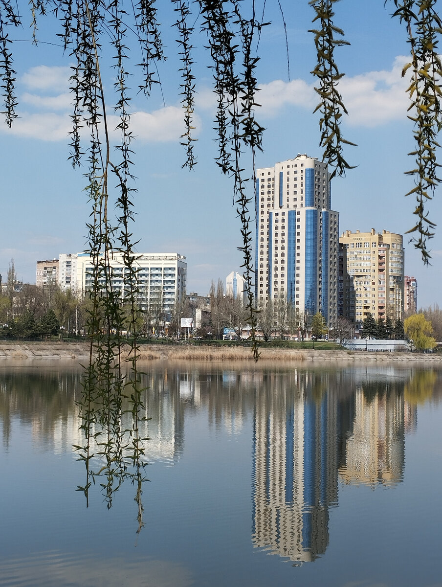 На улице все теплее и солнечнее. В такую чудесную погоду не хочется оставаться в четырех стенах. Значит, нужно отправляться на прогулку, чтобы сфотографировать для читателей моего канала некоторые любимые места в городе. Итак, снова набережная реки Кальмиус, о которой ранее здесь: Теперь покажу вам правый берег от моста на бульваре Шевченко. Здесь можно спуститься к реке или по ступенькам, или чуть дальше. Как обычно, утром в будний день на набережной немноголюдно, но прогуливаются пенсионеры и молодые мамы с колясками, а подальше даже устроились у камышей два любителя загара. Немолодые мужчина в плавках и женщина в купальниках лежат на песке совсем нефотогенично, снимать их не буду. Неподалеку Антон Павлович все также сидит на своем обычном месте возле проспекта Ильича. Бронзовый памятник известному русскому писателю-классику авторства нашего донецкого скульптора Равиля Акмаева здесь установили в 2020 году. Напротив открывается вид на исторический мост через Кальмиус. Внушительное со