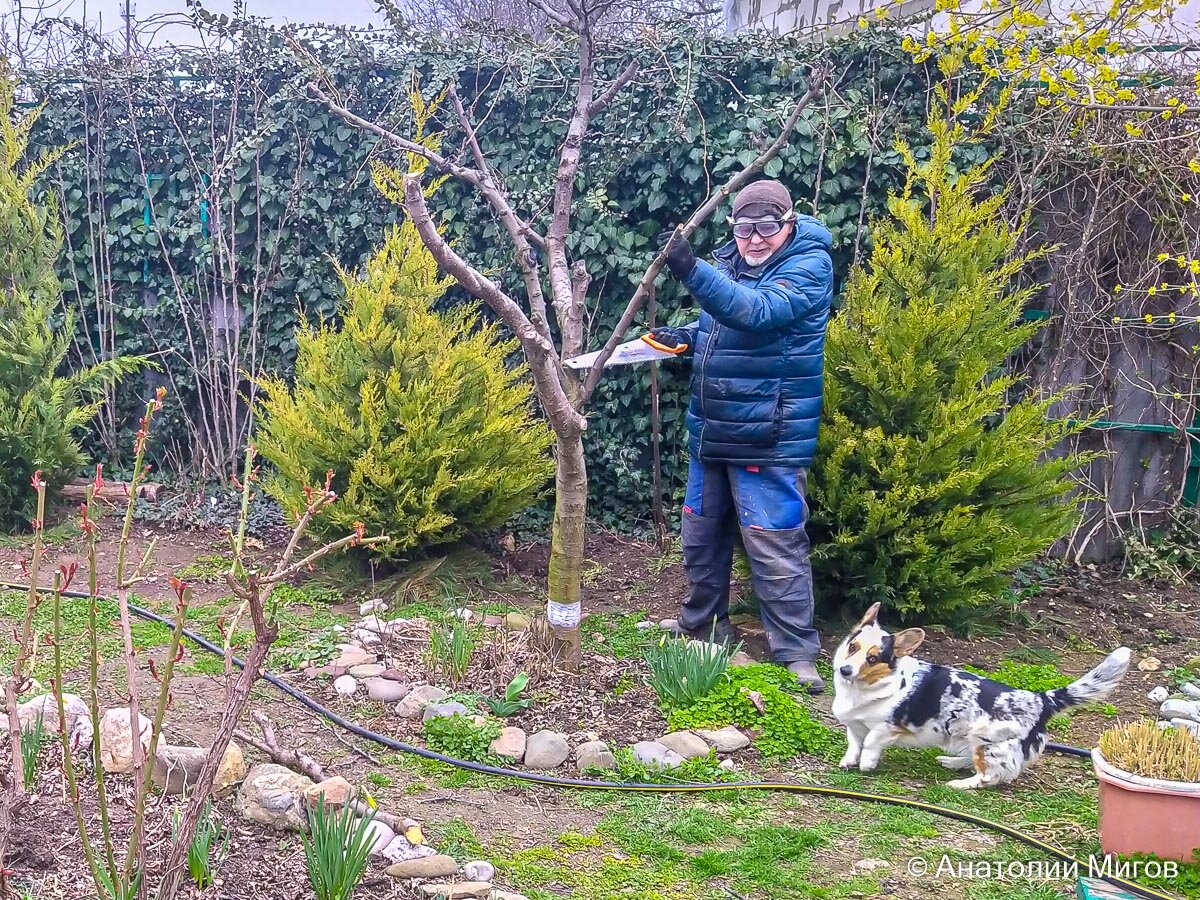 Вы можете спросить, на чём основана моя надежда? Дело в том, что я уже получил подобный опыт. Еще осенью я вот так же спилил нашу вишню Дюк. Она была не так плоха, как слива, хотя тоже болела, но, главное, стала мешать другим деревьям и кустам. Вот на этой вишне я и опробовал новый для себя метод. Осенью закачал в неё гербицид, а в марте приехал в гости сын и выкорчевал ствол.