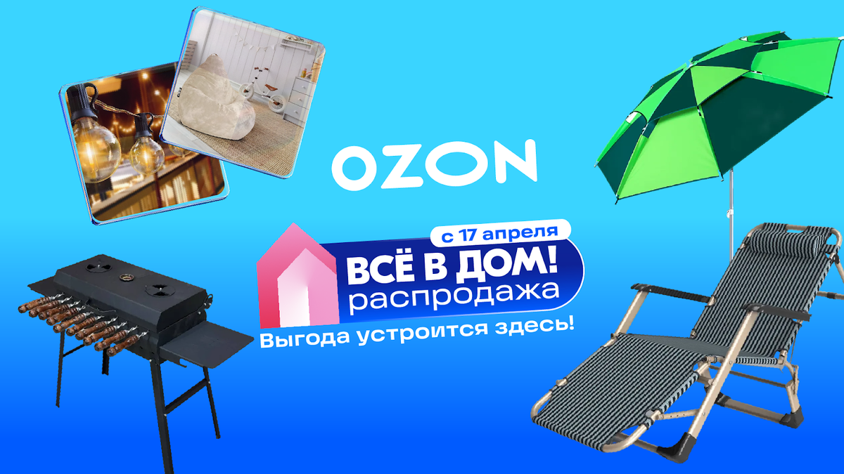 Пора обустраивать уют на участке, если хотите успеть до начала сезона. Мы нашли 9 вещей, которые помогут создать личный рай на природе. Подписывайтесь на канал Ozon в Дзене — так вы точно не пропустите новые модные статьи. Скидки уже построились: на Ozon до конца апреля проходит «Всё в дом! Распродажа». Цены на сотни товаров для обустройства пространства упали до 80%. Лучший повод закупиться перед майскими — показываем лишь малую часть красивых и практичных вещей, которые точно пригодятся. Шезлонг Если до этого ваша спина знала только жёсткую скамейку, такой шезлонг будет для неё лучшим подарком. Лёгкая конструкция складывается и раскладывается одним движением, а возможность настроить положение даёт зелёный свет любому сценарию отдыха. Хотите — расслабленно сидите и жмурьтесь на солнце. Хотите — полулёжа любуйтесь облаками. Хотите — полностью разложите шезлонг и загорайте. Приятный бонус: удобная анатомическая подушка. Кресло-груша Когда хочется развалиться без ограничений и безудержно