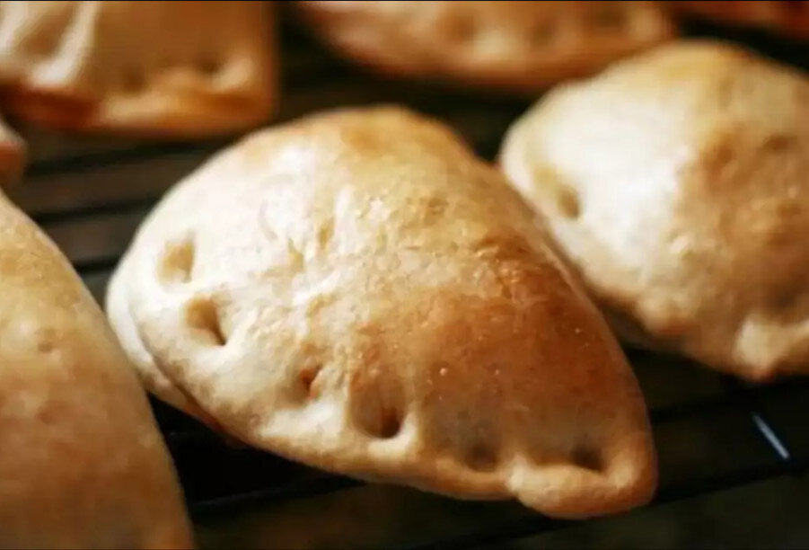 Подошедшее тесто обмять, разделить на 10 частей, скатать их в шарики. Каждый шарик раскатать на столе, положить начинку, защипнуть края, придать пирожкам овальную форму. Пирожки выложить на противень, покрытый бумагой для выпечки, накрыть салфеткой из ткани и поставить в теплое место на 30 минут. Перед тем, как поставить пирожки в духовку, смазать их подслащённой водой или заваркой черного чая. Это придаст пирожкам приятный цвет. Пирожки поставить на 20 минут в духовку, разогретую до 220°С. После того, как пирожки испекутся, их нужно вновь накрыть салфеткой из ткани и дать постоять 10 минут, чтобы корочка стола мягкой.