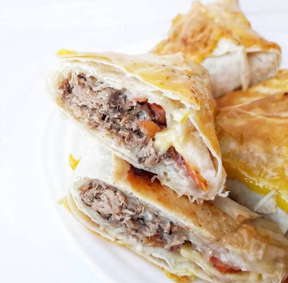 КБЖУ на 100гр: 211/20/5.4/19.4 КБЖУ на 1шт: 141/13.4/3.6/13 Выход ~267гр, 4шт 🥠лаваш-90г 🥠тунец в с/с-140г 🥠яйцо-1шт 🥠сыр-25г 🥠помидор-30г -лаваш разрезать на 4полосы -сырое яйцо разделить на белок и желток -белок соединить с тунцом -сыр разрезать на 4кусочка -помидор разрезать на 4части -на лаваш выложить тунец, сыр и помидор -скрутить в треугольник, смазать желтком -отправить в разогретую до 200град духовку на 20мин
