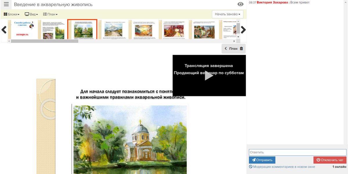 Для этого не нужно никакого специального оборудования: только браузер, веб-камера и микрофон. Вы можете отправить уведомление о вебинаре своим текущим клиентам чтобы, сообщить им о дистанционном формате обучения. Тут вы можете добавлять уроки, чтобы уроки были интересными, можно добавить, видео, аудио, текстовые документы, презентации, домашние задания. Можно проводить анкетирование, тестирование и т.д.