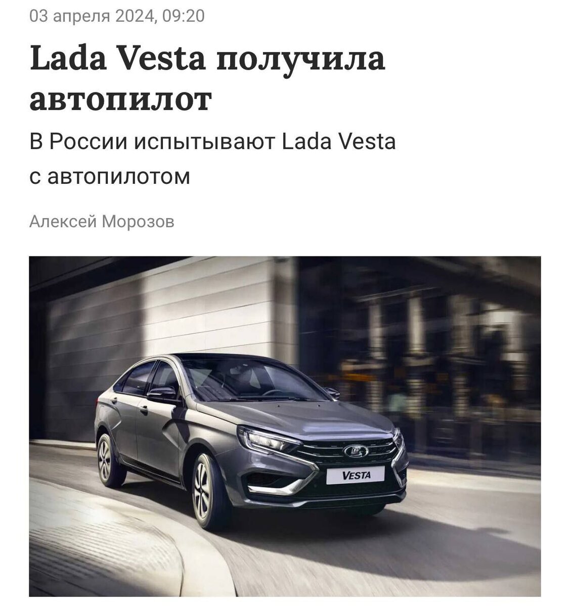 Автомобиль Lada Vesta оснастили автопилотом и вывели на тесты на дороги общего пользования и на испытательный полигон. Об этом рассказал исполнительный директор по информационным и интеллектуальным системам ФГУП «НАМИ» Денис Ендачев.