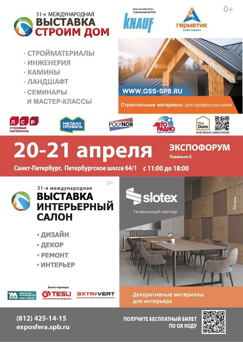 20-21 апреля в КВЦ Экспофорум будет проходить лидирующая выставка Петербурга по строительству, инженерии, интерьеру, дизайну и ремонту - «Строим Дом. Интерьерный Салон».
