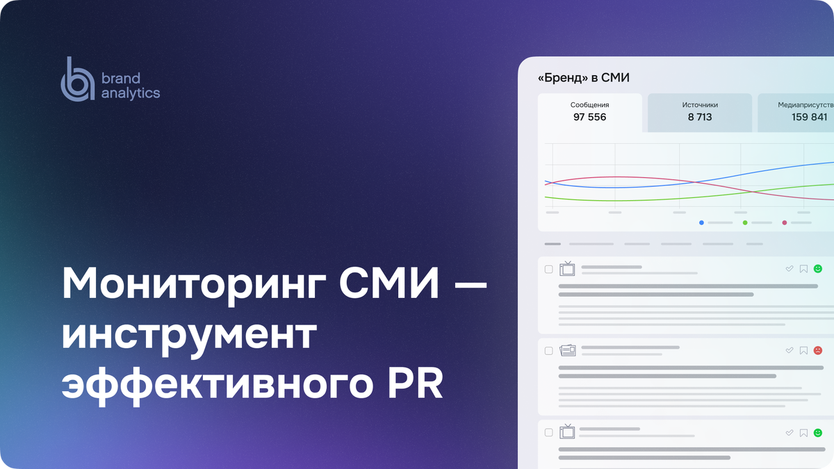 В системах мониторинга СМИ есть встроенные метрики эффективности PR для регулярного контроля. В Brand Analytics можно отслеживать: