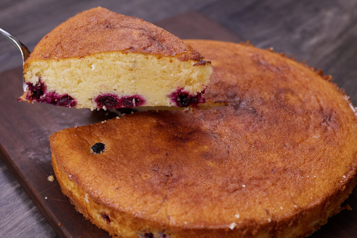 Ингредиенты: Яйца 3 шт. Сахар 12 столовых ложек Соль 1 щепотка Молоко 12 ст. ложек Подсолнечное масло 12 ст. ложек Мука 12 ст. ложек Разрыхлитель 5 г Чёрная смородина замороженная 12 ч. ложек Для подготовки формы: Мука ½ ст. ложки Подсолнечное масло ½ ст. ложки Понадобятся столовые ложки и форма со разъёмными бортами диаметром 25 см Приготовление: 1. В большую миску разбить 3 яйца, добавить 12 ст. ложек сахара, щепотку соли и взбить венчиками миксером до пышной пены и растворения сахара. 2. В яичную взбитую массу влить 12 ст. ложек молока, 12 ст. ложек подсолнечного масла и перемешать миксером на медленной скорости. 3. В отдельную миску положить 12 ст. ложек муки с небольшой горкой и смешать с разрыхлителем. 4. Пересыпать муку в жидкие ингредиенты и аккуратно перемешать лопаткой до однородности. 5. У формы с разъёмными бортами выстелить дно пергаментом и смазать подсолнечным маслом и стенки формы (1/2 ст. ложки), посыпать мукой (1/2 ст. ложки) и перелить тесто в форму. 6. Всыпать 12
