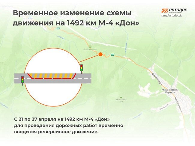 Теперь нужно привести в порядок повреждённое оползнем покрытие проезжей части. В связи с этим на семь дней, с 21 по 27 апреля, там изменят схему проезда. На 1492-м километре М-4 «Дон» введут реверсивное движение. Регулировать его будут с помощью светофоров, сообщает Автодор.