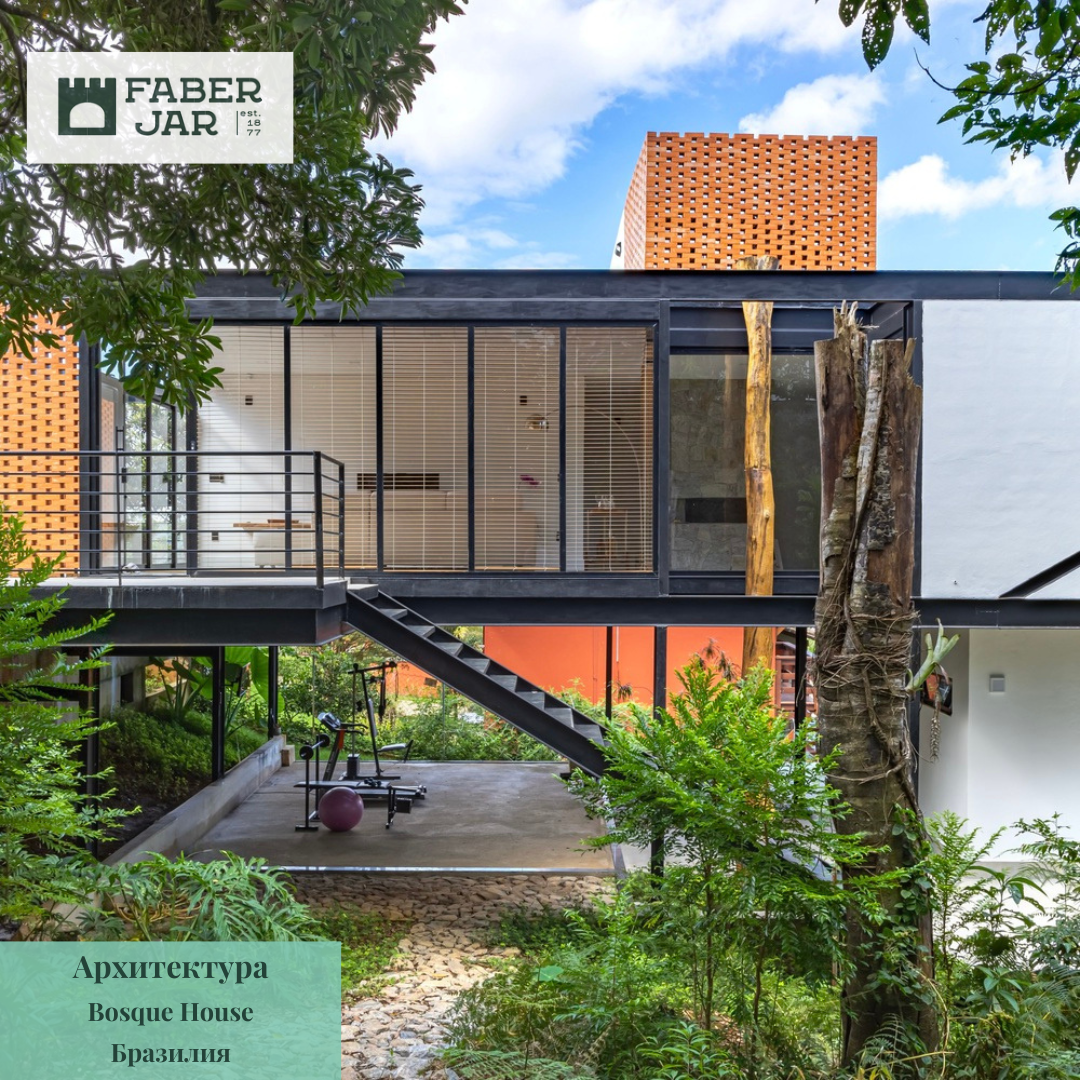 🏡 Проект Bosque House от Nó Arquitetura — необычный коттедж в самой высокой части города, на крутом склоне, с видом на море в Бразилии. 🌿 Дизайнерская идея родилась из минимального вмешательства в ландшафт, создавая уважительный диалог с окружающей природой. Дом, который адаптируется к земле, а не наоборот. 🧱 Лаконичная, но эффектная палитра материалов определяет дизайн: бетон, натуральные камни, сталь, стекло и кирпич. Кирпич отвечает за покрытие всего главного фасада, обеспечивая исключительную приватность и визуальную провокацию оригинальной кладкой. 🏠 Дом Боске — это спокойное пространство, полное интересных материалов и пространственных нюансов.