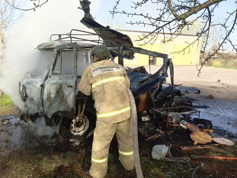 Во время массированной атаки на Глушковский район сгорел автомобиль газовой службы