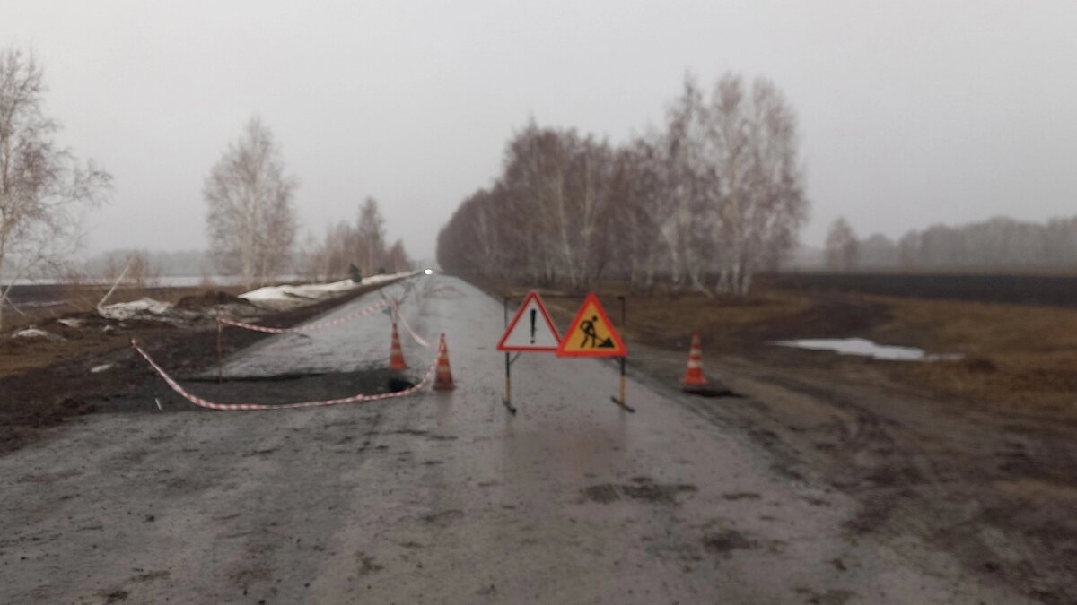 Провалился асфальт: в Омском районе перекрыли дорогу из Красной Горки
