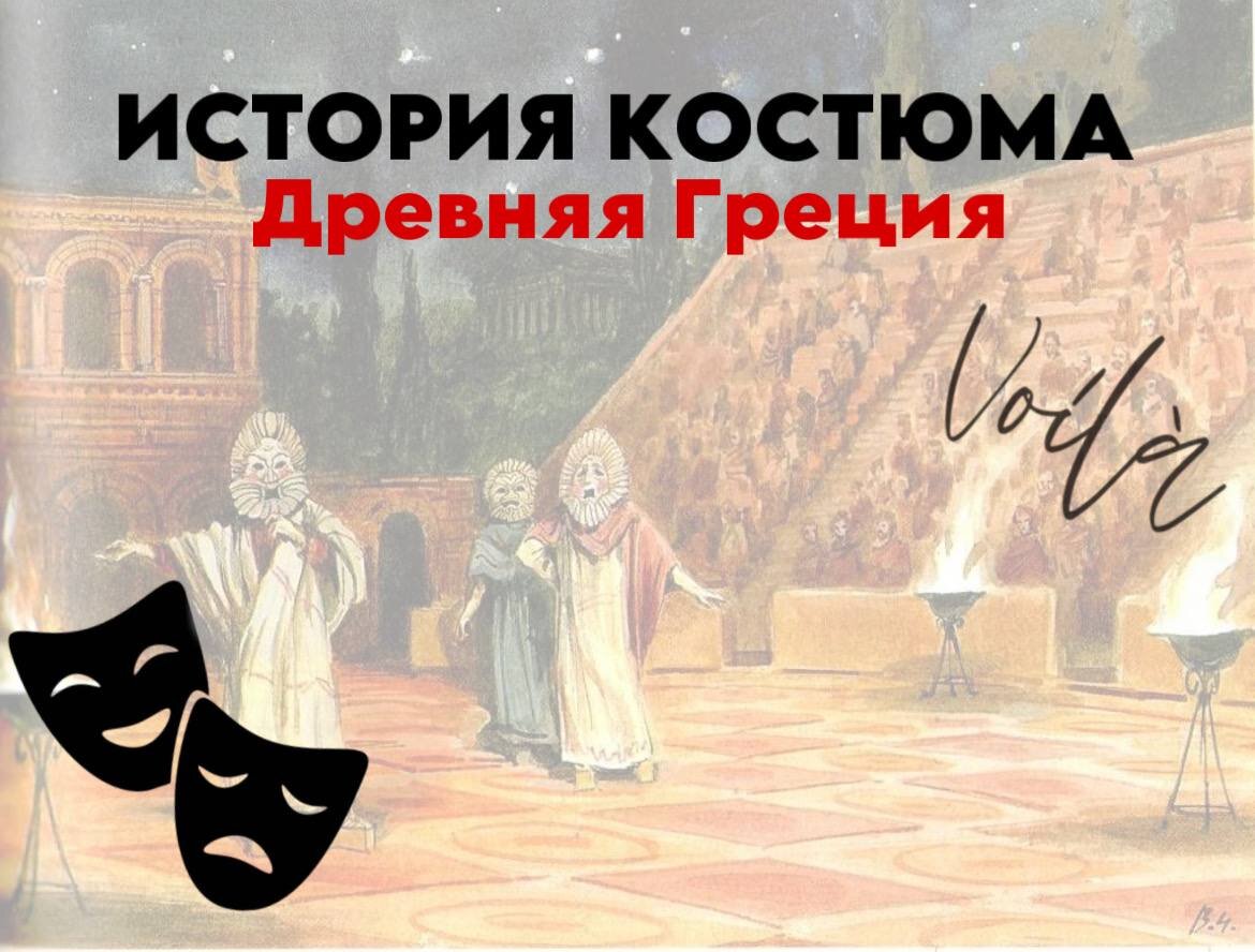 Вуаля! ✨ Поговорим об истоках истории театрального костюма. Подписывайтесь на наш Telegram-канал 🏛️Древняя Греция, колыбель театра, не могла обойтись без театральных костюмов, которые играли важную роль в образе персонажей и передаче эмоций на сцене. 🥋Самым распространенным элементом древнегреческого театрального костюма был хитон - простое платье из шерсти или льна, которое надевалось на тело актера. Хитон был разнообразен: от простого до более сложного в декоре, в зависимости от статуса и роли персонажа. 🥻На сцене греческого театра также можно было увидеть хламиду - верхнюю одежду, прямоугольный плащ или мантию, часто украшенные яркими цветами и узорами. Хламида носилась поверх хитона и мог использоваться для указания на происхождение или класс персонажа. 👺Но самым узнаваемым элементом древнегреческого театрального костюма были маски. Сделанные из дерева или льна, они помогали актерам выразить эмоции и характер персонажа, усиливали их голос и помогали публике быстрее узнать геро
